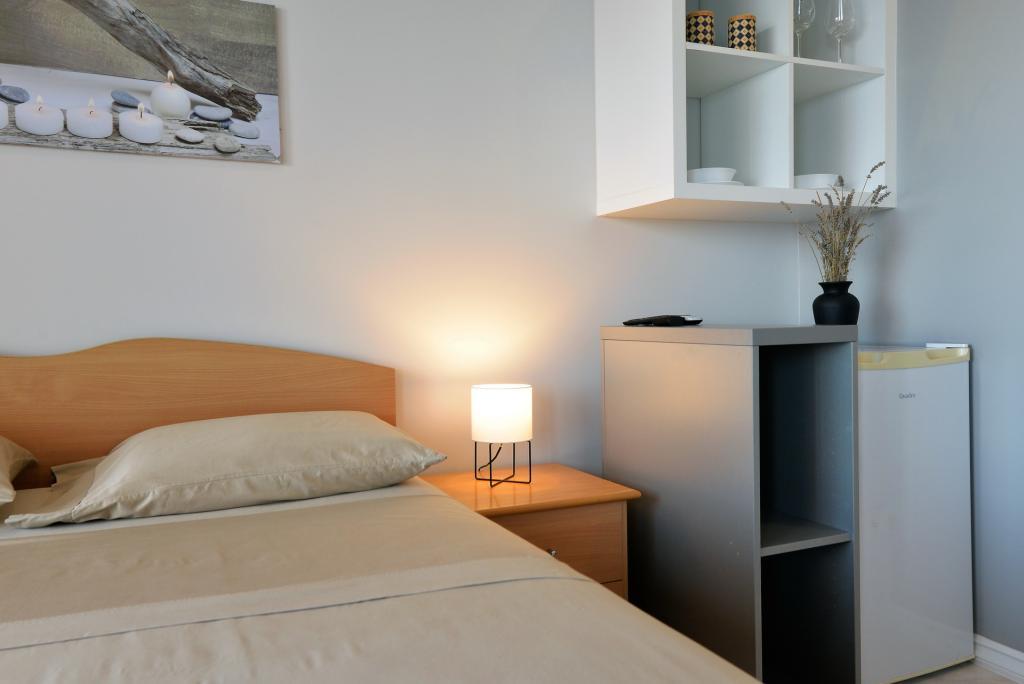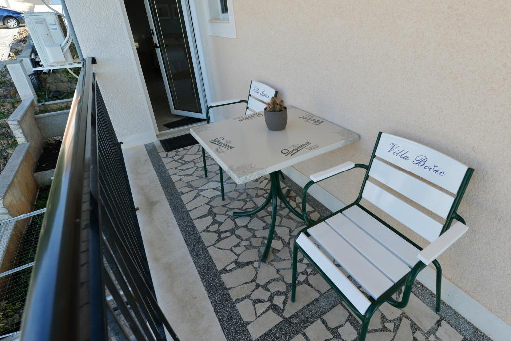 De kamer die we gebruikten was netjes. We hadden een deel van het terras voor onszelf (het zijgedeelte wordt gebruikt door een ander appartement naast de kamer) met een prachtig uitzicht op de zee en Kornati. Waarvan je het geluid van de golven kunt horen. Onbetaalbaar!! Er is weinig verkeer, dus er is geen autogeluid. Er zit een klamboe op het badkamerraam (dat uitkijkt op het terras van het naastgelegen appartement), ook op de grote schuifdeur van het terras. Prijzenswaardig. De kamer is uitgerust met voldoende serviesgoed voor snelle maaltijden. De magnetron hebben we niet gebruikt omdat er etensresten van andere gasten waren, het fornuis zat vol kalkaanslag. Een handdoekdroger ontbreekt op het terras. Aan de overkant van de weg ligt een rotsachtig ‘strand’ en voor wie iets comfortabelers wil, is er het Slanica-strand (1,5 km). aan de ene kant en het strand van Čigrađa aan de andere kant (ca. 500 m). We hielden niet van het lawaai (geschreeuw, luide gesprekken, bewegende meubels, telefoongesprekken op de luidspreker) van het grote appartement, tot ongeveer 1 uur 's nachts kwamen we tot rust... Misschien wat huisregels invoeren. De villa zelf is prachtig! De gastheer verwelkomde ons vriendelijk en koelde zelfs de ruimte voor ons af, wat geweldig was. Hij liet ons zelfs vóór de afgesproken tijd het appartement binnen. Het uitzicht vanaf het terras, het geluid van de golven en het geluid van de krekels overtrof alles!