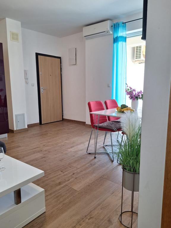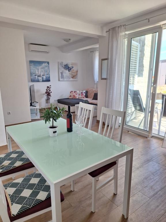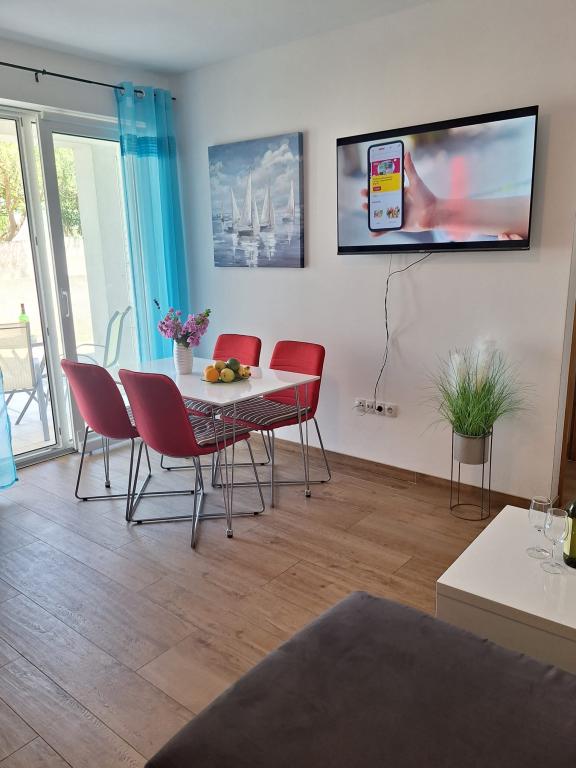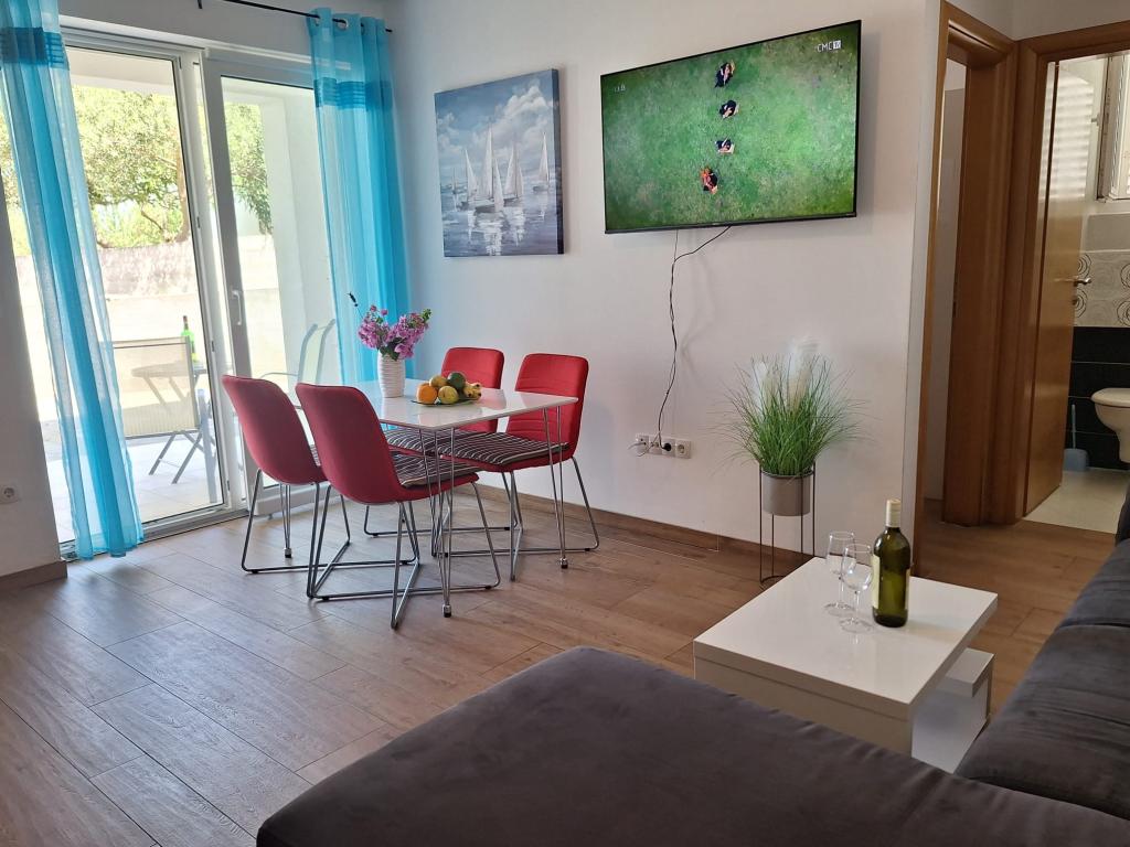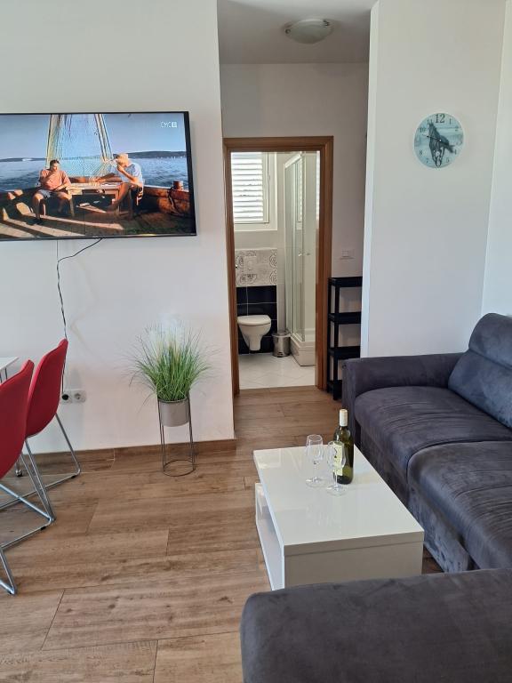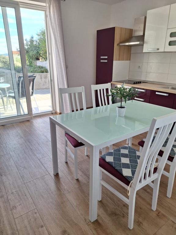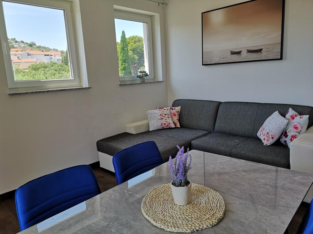 Villa Tea bestaat uit zes wooneenheden. De appartementen hebben een of twee slaapkamers, een badkamer, een woonkamer met een keuken en een eetkamer, en een terras met een prachtig uitzicht op zee. De appartementen zijn van alle gemakken voorzien. Elk appartement heeft een eigen parkeerplaats, gratis wifi en airconditioning. Het dichtstbijzijnde zandstrand Slanica ligt op slechts vijf minuten van de accommodatie. Als u daarentegen graag een wandeling maakt over het pad waarover de pijnboomtakken hangen en uw wandeling aangenaam maken, ligt ongeveer tien minuten van Slanica het strand van Podvrška met de prachtige turquoise kleur van de zee. Er is een winkel in de buurt en het stadscentrum ligt op slechts 15 minuten afstand. Als je in staat bent, is onze warme aanbeveling om de nationale parken van Kornati en de rivier de Krka, de kloof van de rivier de Zrmanja en de natuurparken van het meer van Vrana en Telaščica te bezoeken.
