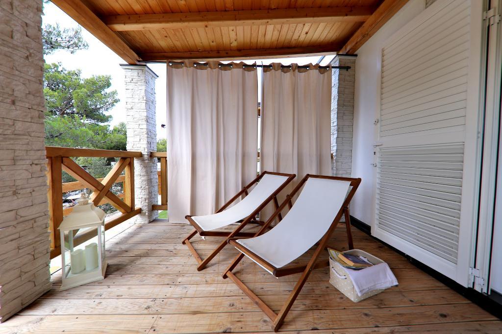 Stacaravans op camping Lostura bevinden zich in de directe omgeving van een van de mooiste stranden aan de Adriatische Zee, Slanica! De stacaravan ligt op slechts 30 meter van de zee en 200 meter van het zandstrand Slanica. Het huis heeft een terras van 40 m², waarvan 20 m². Het huis heeft twee slaapkamers, één met een tweepersoonsbed (160x200) en een kamer met twee eenpersoonsbedden (80x200). In de woonkamer staat een hoekbank die kan worden gebruikt als extra bed voor een volwassene of twee kleine kinderen. De keuken is volledig uitgerust met alle benodigde apparatuur (koelkast met vriezer, oven, magnetron, vaatwasser, waterkoker, koffiezetapparaat). Badkamer met douche, wasmachine, haardroger en badkameraccessoires. In de woonkamer is er een tv met satellietontvanger, gratis internet en airconditioning voor verkoeling en verwarming. Op het terras staat een eettafel met stoelen en een ligstoel om te zonnebaden en te genieten van het prachtige uitzicht op de Kornati-eilanden en het strand van Slanica. Parkeergelegenheid is direct bij het huis.