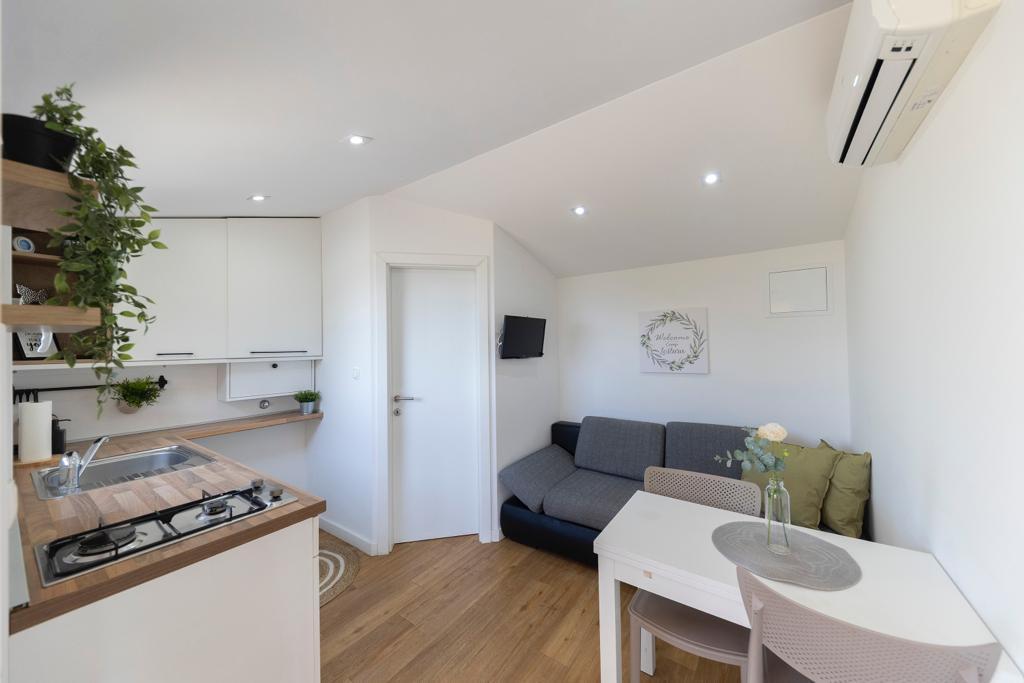 Stacaravans op camping Lostura bevinden zich in de directe omgeving van een van de mooiste stranden aan de Adriatische Zee, Slanica! De stacaravan ligt op slechts 30 meter van de zee en 200 meter van het zandstrand Slanica. Het huis heeft een terras van 40 m², waarvan 20 m². Het huis heeft twee slaapkamers, één met een tweepersoonsbed (160x200) en een kamer met twee eenpersoonsbedden (80x200). In de woonkamer staat een hoekbank die kan worden gebruikt als extra bed voor een volwassene of twee kleine kinderen. De keuken is volledig uitgerust met alle benodigde apparatuur (koelkast met vriezer, oven, magnetron, vaatwasser, waterkoker, koffiezetapparaat). Badkamer met douche, wasmachine, haardroger en badkameraccessoires. In de woonkamer is er een tv met satellietontvanger, gratis internet en airconditioning voor verkoeling en verwarming. Op het terras staat een eettafel met stoelen en een ligstoel om te zonnebaden en te genieten van het prachtige uitzicht op de Kornati-eilanden en het strand van Slanica. Parkeergelegenheid is beschikbaar in de directe omgeving van het huis.