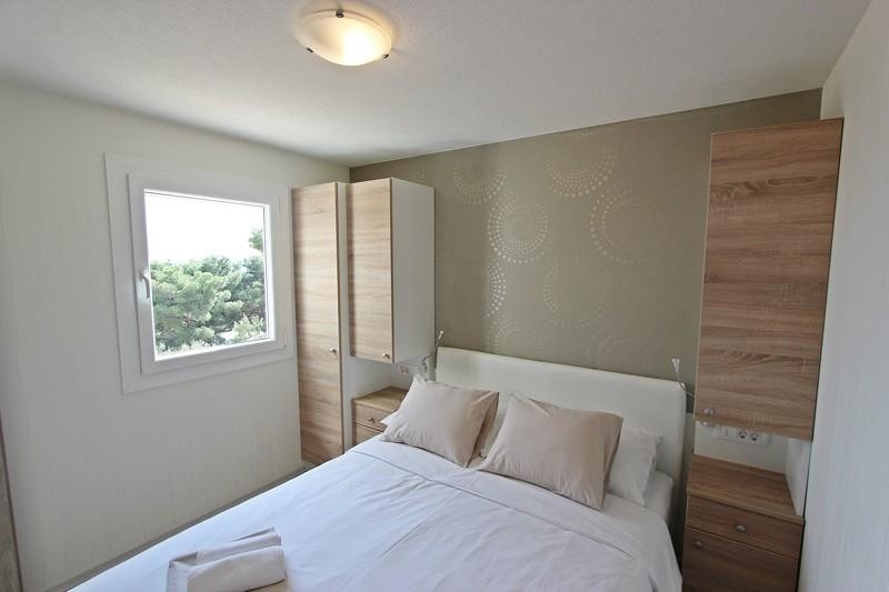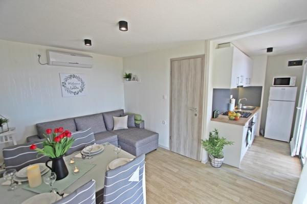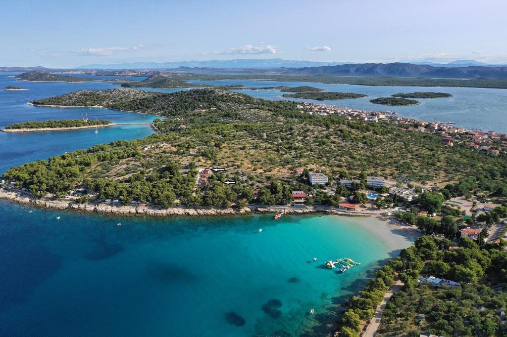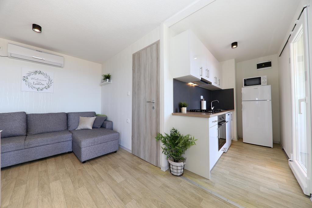 Stacaravans in de Camping Lostura liggen in de buurt van een van de mooiste stranden in de Adriatische Zee, Slanice !. De stacaravan ligt op slechts 30 meter van de zee en 200 meter van het zandstrand Slanica. Het huis heeft een terras van 40m2 en 20m2. In het huis zijn er twee slaapkamers, een met een tweepersoonsbed (160x200), en een kamer met twee aparte bedden (80x200). In de woonkamer is een hoekige set die kan worden gebruikt als een extra bed voor een volwassene of twee jonge kinderen. De keuken is volledig uitgerust met alle benodigde apparatuur (koelkast met vriesvak, oven, magnetron, afwasmachine, waterkoker, waterkoker, koffiezetapparaat). Badkamer met douche, wasmachine, haardroger, toiletartikelen. In de woonkamer is er een tv met satellietontvanger, gratis internet, airconditioning en verwarming. Op het terras staat een eettafel met stoelen en een ligstoel en een prachtig uitzicht op de Kornati-eilanden en het strand van Slanica. Parkeerplaats bevindt zich in de buurt van het huis