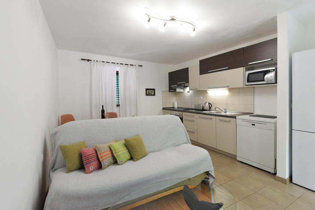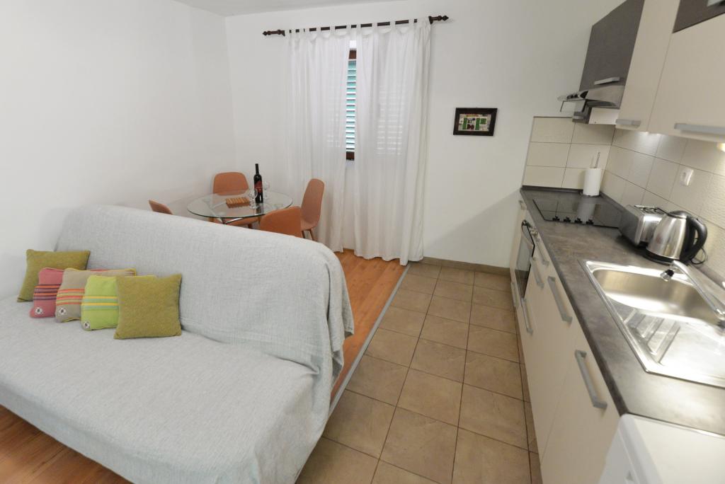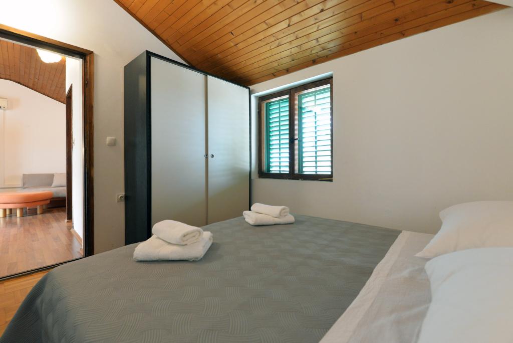 Het appartement voor 2+1 of 2+2 personen is gelegen in het oude gedeelte van Murter in een authentiek Dalmatisch stenen huis. Het appartement heeft één kamer waar 2 volwassenen kunnen slapen, in de woonkamer staat een bank (extra bed) die gebruikt kan worden om te slapen, er is plaats voor 1 volwassene of twee kleinere kinderen. De keuken is volledig uitgerust. Het appartement beschikt over WiFi internet, airconditioning, een vaatwasser, buiten het appartement staat in de berging een wasmachine waar gratis gebruik van gemaakt mag worden. Voor het appartement bevindt zich een groot terras met barbecue. Het appartement beschikt over gratis parkeergelegenheid. Het appartement is gelegen in het oude gedeelte van Murter. Het appartement heeft twee slaapkamers waar 4 volwassenen kunnen slapen. In de woonkamer staat een bank (extra bed) die gebruikt kan worden om te slapen. Het appartement is voorzien van Wi-Fi internet, airconditioning, vaatwasser, wasmachine. Het appartement beschikt over twee gratis parkeerplaatsen. Het terras op de foto kan gebruikt worden.