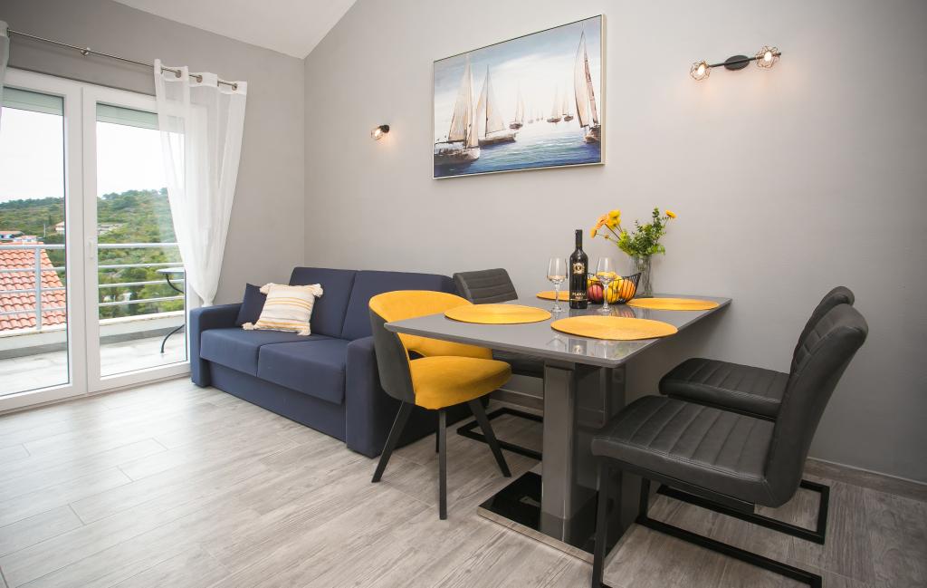 Het appartement is gelegen in de baai Necujam op het eiland Solta. Het appartement is nieuw, bestaat uit een kamer met een tweepersoonsbed, een kamer met twee eenpersoonsbedden, woonkamer met slaapbank, badkamer en is volledig uitgerust met al het gebruikelijke en noodzakelijke (beddengoed, handdoeken, servies, strijkijzer, wasmachine , magnetron, kluis, TV, DVD, WI-FI, airconditioning, barbecue). Het gebouw bevindt zich op de tweede rij naar de zee, het uitzicht vanaf het balkon is naar de zee, er is parkeergelegenheid. De winkel bevindt zich in de buurt van ongeveer 100 meter en een kiezelstrand, geschikt voor kinderen en volwassenen. Naast het strand is een volleybalveld, tafeltennis. De prijs is inclusief het gebruik van airconditioning. Door voor ons appartement te kiezen, krijgt u echt de accommodatie die ook op deze website wordt getoond.