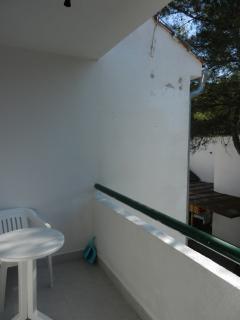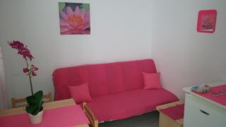 Appartement Bougainvillea is gelegen in een dennenbos (ca. gelegen. 200 m van de zee). Het appartement bestaat uit een slaapkamer met een tweepersoonsbed, een kaptafel en een kledingkast in de andere kamer heeft twee eenpersoonsbedden en een kledingkast. De woonkamer heeft een eettafel met 4 stoelen, een slaapbank, een koelkast, een lcd-tv en air-conditioning. De woonkamer heeft een balkon met uitzicht op het dennenbos waar sprake is van een tafel met twee stoelen. Badkamer met douche en een keuken met een fornuis met twee platen, waterkoker en kookgerei. Aan de voorzijde van het huis is een groot terras (16m2) met tuin tafel en 6 stoelen, bedekt met een luifel. Het terras is omheind en is geschikt voor het veilig verblijf van kleine kinderen. In Necujam is een groot kiezelstrand met turkooizen zee. Het strand kan worden bereikt door een wandeling door het bos of de stoep naast de weg. De winkel is slechts 70m afstand en de bars, cafés, bakker en fastfood over 250m.