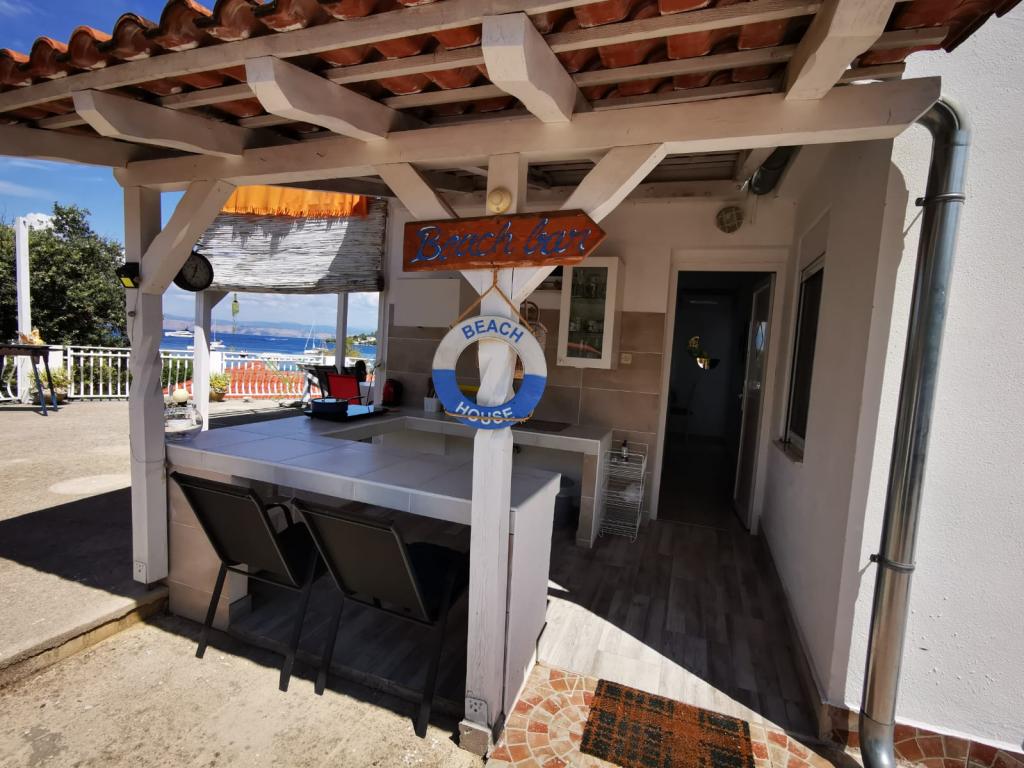 Vriendelijke gastheren, perfecte ligging vlakbij het strand, buitenkeuken en een prachtig terras met uitzicht op zee. Puppy's zijn ook welkom.