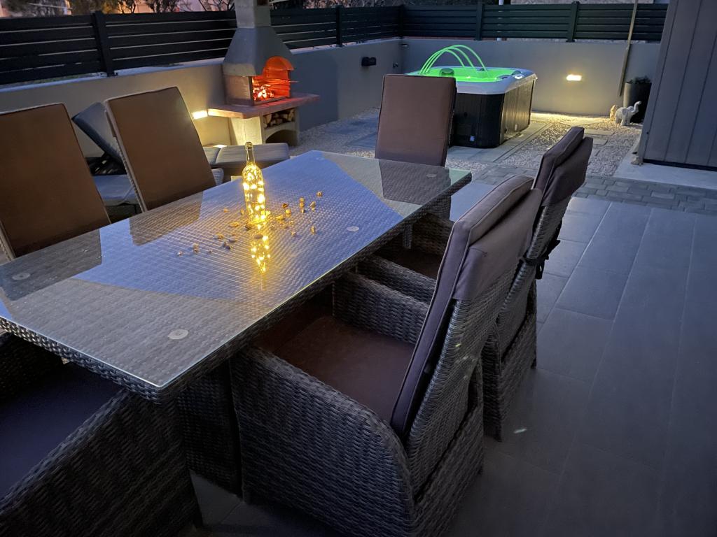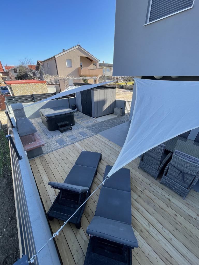 LE Stan, Ulica 4C Vrsi, Kroatië Type Exclusief / vakantiehuis Accommodatie 6-8 > gasten slaapkamer 3 slaapkamers / 3 bedden badkamer 2 badkamers Comfort ontmoet elegantie Breng uw vakantie in Kroatië door met Appartement LE en geniet van een aangename vakantie in een familiale sfeer. U kunt eersteklas voorzieningen en een elegante buitenruimte verwachten, waaronder een verwarmd bubbelbad. Het strand is gemakkelijk te voet bereikbaar (ca. 150 m). Honden zijn welkom in appartement LE! De stad Vrsi ligt dicht bij Nin en Zadar.