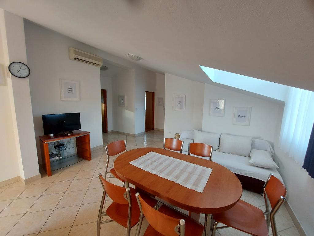 Volledig uitgerust en voorzien van airconditioning appartement in de rustige rand van het dorp Vrsi Zukve, nabij de stad van Nin en de Nin geneeskrachtige modder. Zukve bevinden zich op 15 kilometer van de stad Zadar. Tot de concrete strand 60 meter naar het zand en grind 300 meter. Gasten hebben toegang tot internet, barbecue en buitendouche. Er is parkeergelegenheid. Het appartement heeft drie slaapkamers, badkamer en toilet, keuken, eetkamer en woonkamer en een terras van 20 vierkante meter. Terras, in voorkomend geval, kan een overdekte luifel af te ronden.