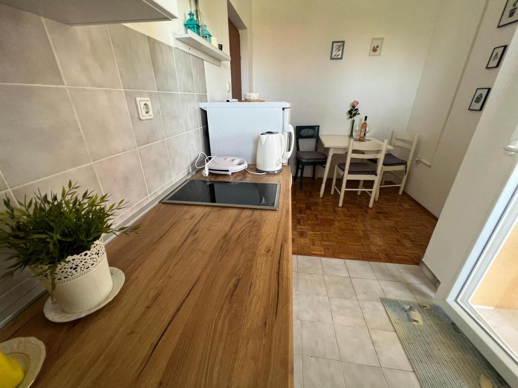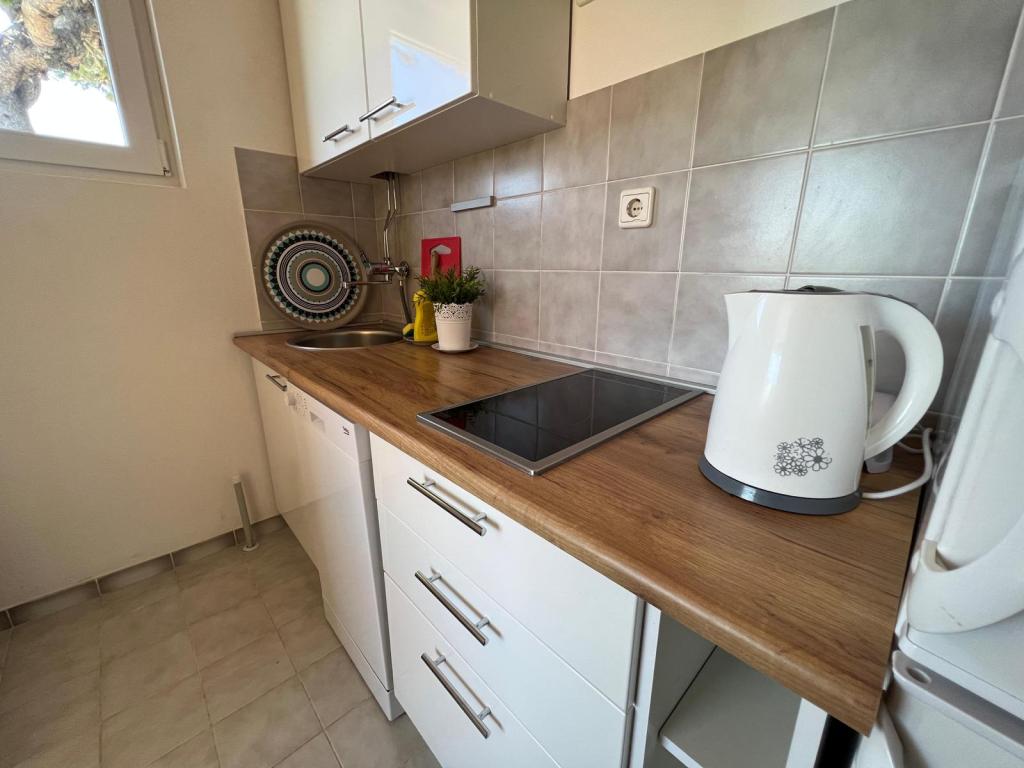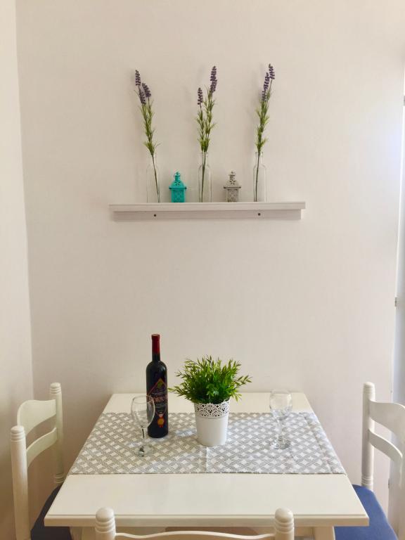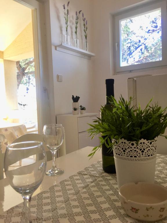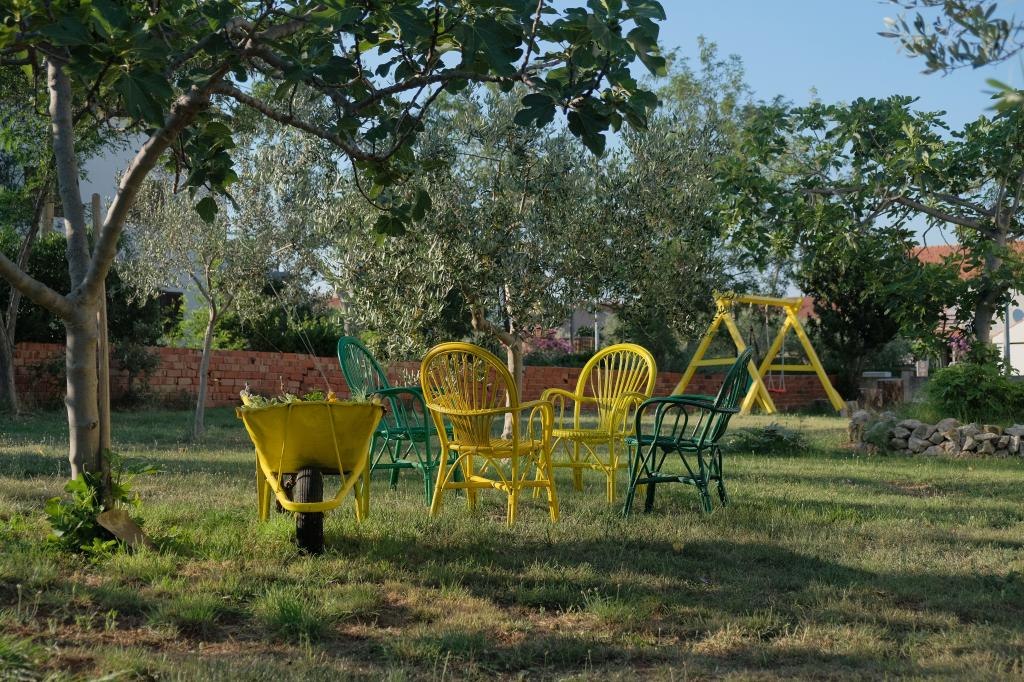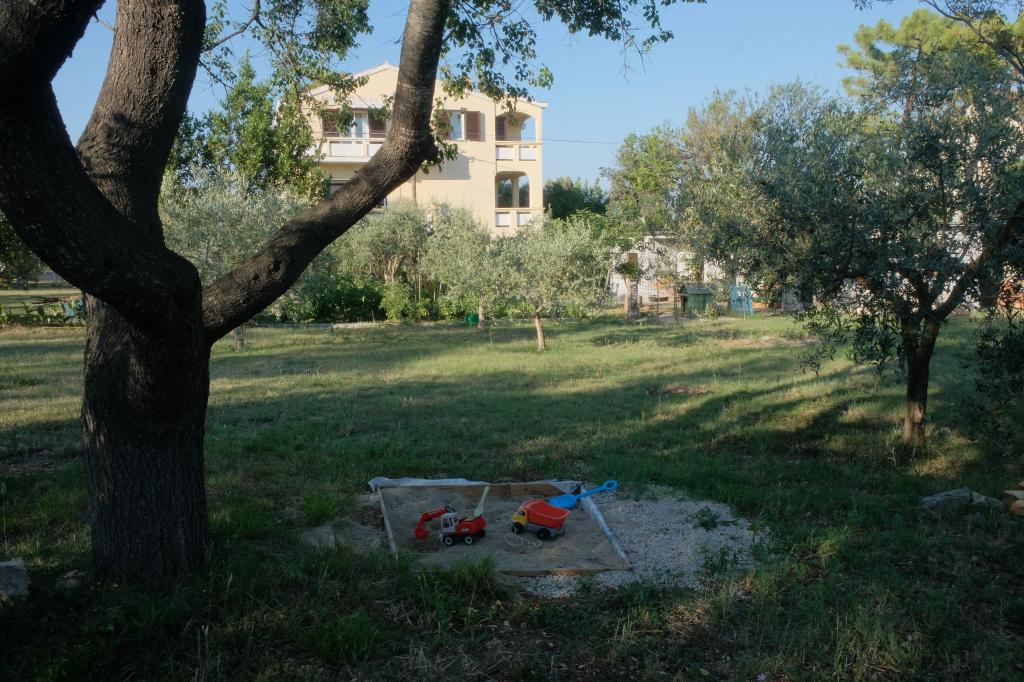 Volledig ingerichte appartementen in een rustig deel van Nin. Ze liggen op 200 meter van de zee. De accommodatie ligt op 10 minuten lopen van het strand en op 10 minuten lopen van het centrum. De supermarkt Tommy en een supermarkt liggen op slechts 50 meter afstand. Het eerste restaurant ligt slechts 100 meter verderop. Er is gratis parkeergelegenheid op de binnenplaats van het gebouw. Het pand beschikt over een grote tuin met een zandbak en schommels voor kinderen. De appartementen beschikken over nieuw ingerichte keukens. Elk appartement beschikt over een koelkast met vriezer. Er is ook een grill in de tuin.