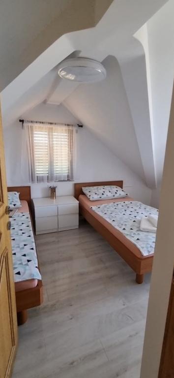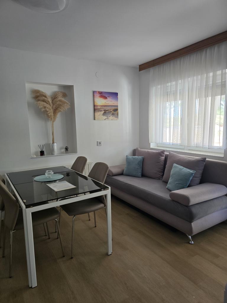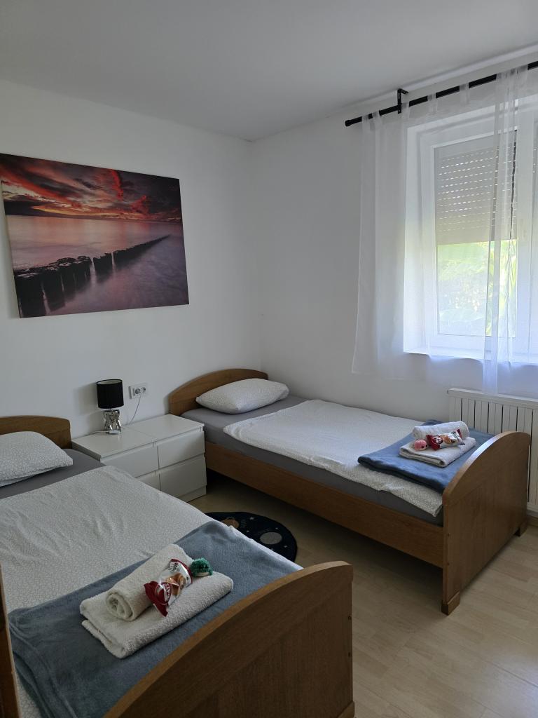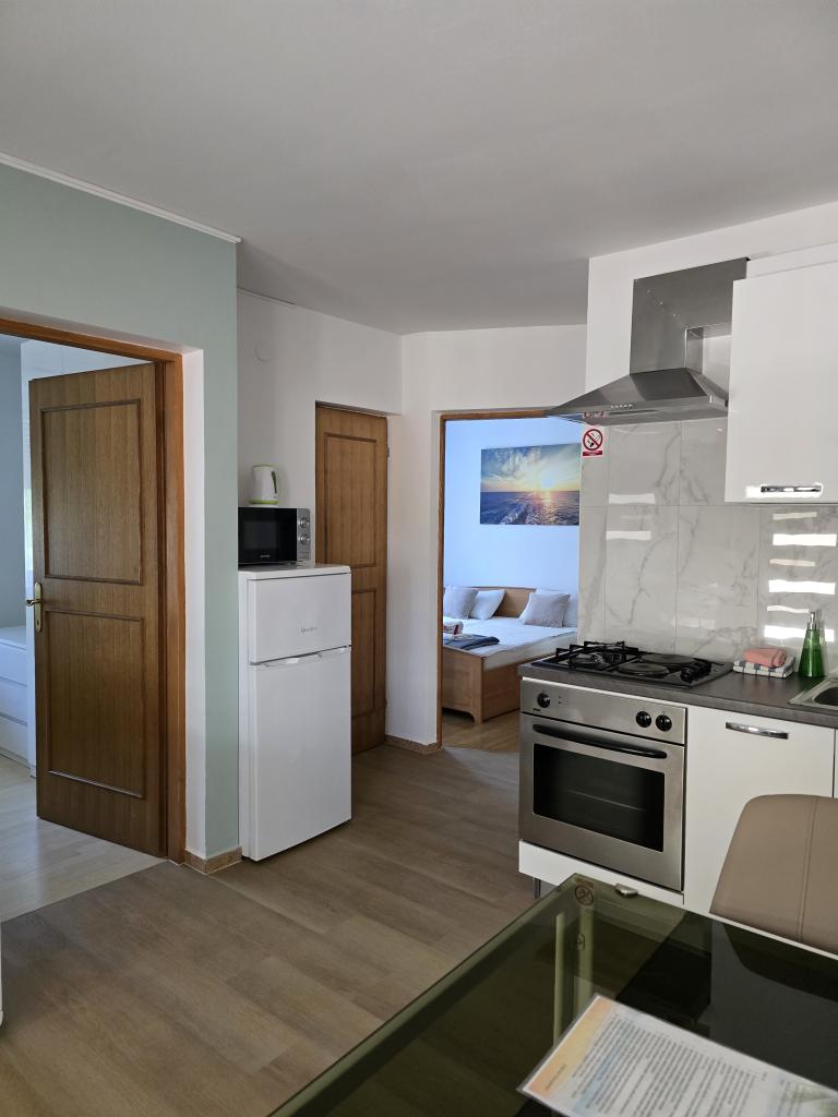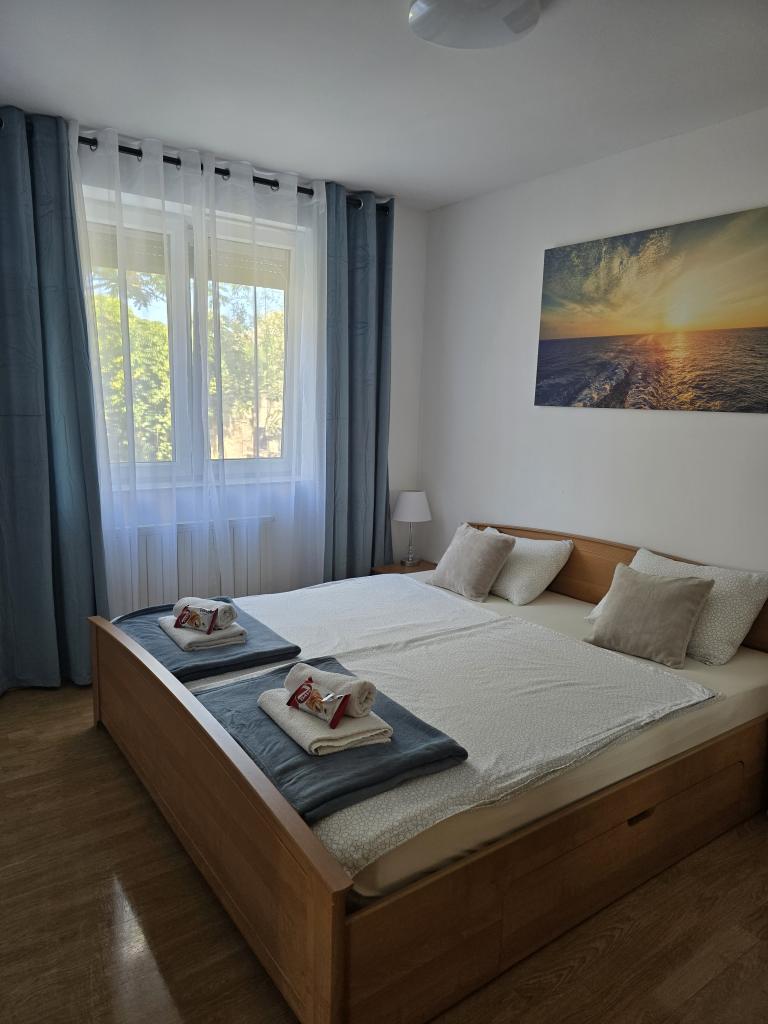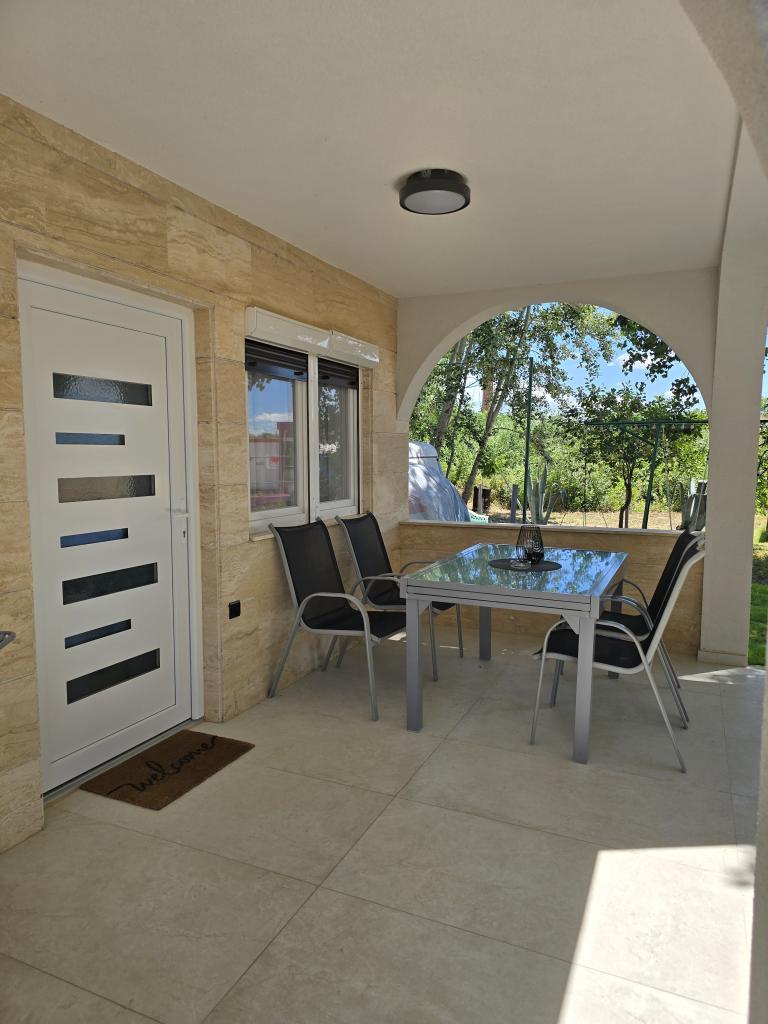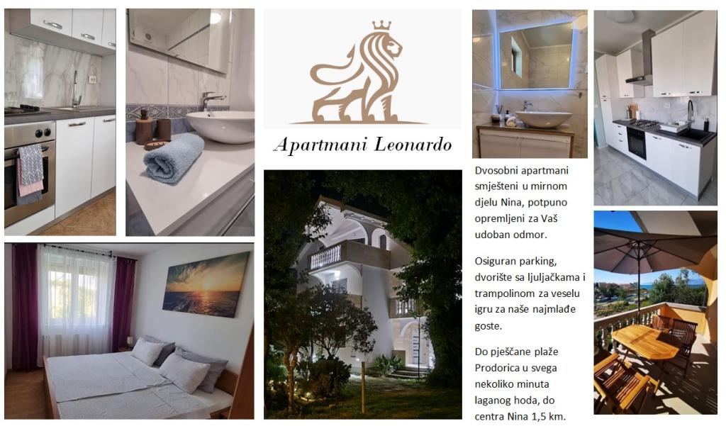 Appartementen Leonardo bevinden zich in een gezinswoning met in totaal 3 appartementen. Het huis ligt in een rustig deel van de stad, vlakbij het zandstrand van Prodorica, een uitstekende keuze voor gezinnen met kinderen. Het centrum van Nin ligt op 15 minuten loopafstand of op 5 minuten rijden met de auto. De appartementen bestaan uit twee slaapkamers met een tweepersoonsbed en twee eenpersoonsbedden, een badkamer met bad/douche, een volledig uitgeruste keuken en eetkamer, en een overdekt buitenterras. Gasten hebben de beschikking over: airconditioning, tv, magnetron, waterkoker, wasmachine, haardroger, strijkijzer, kinderbedje en voederbak. Voor elk appartement is parkeergelegenheid op het erf van het gebouw.