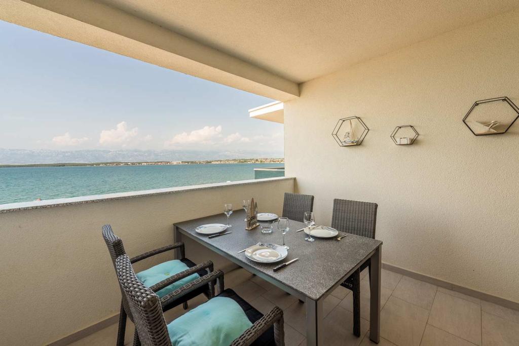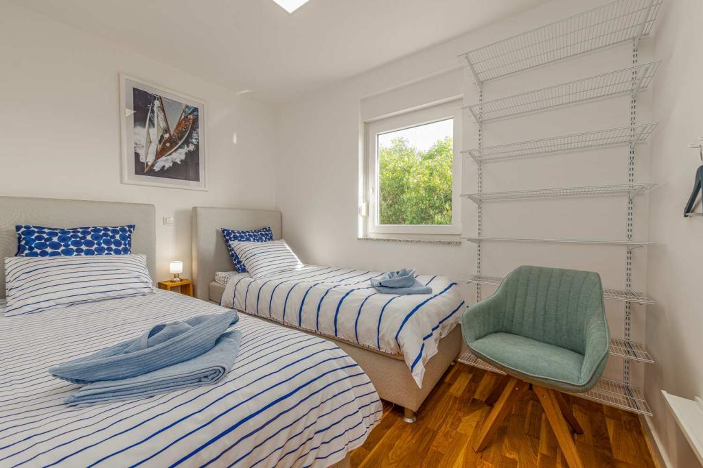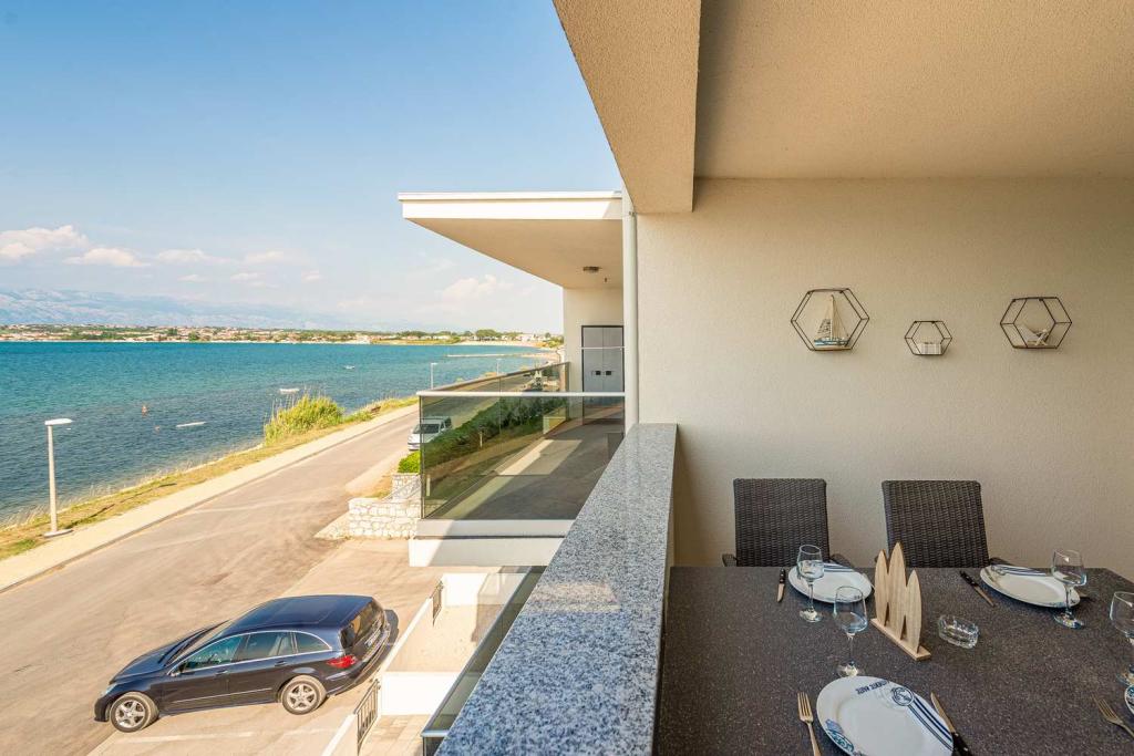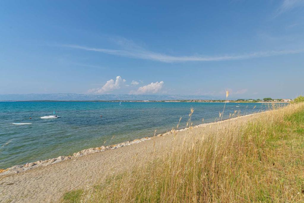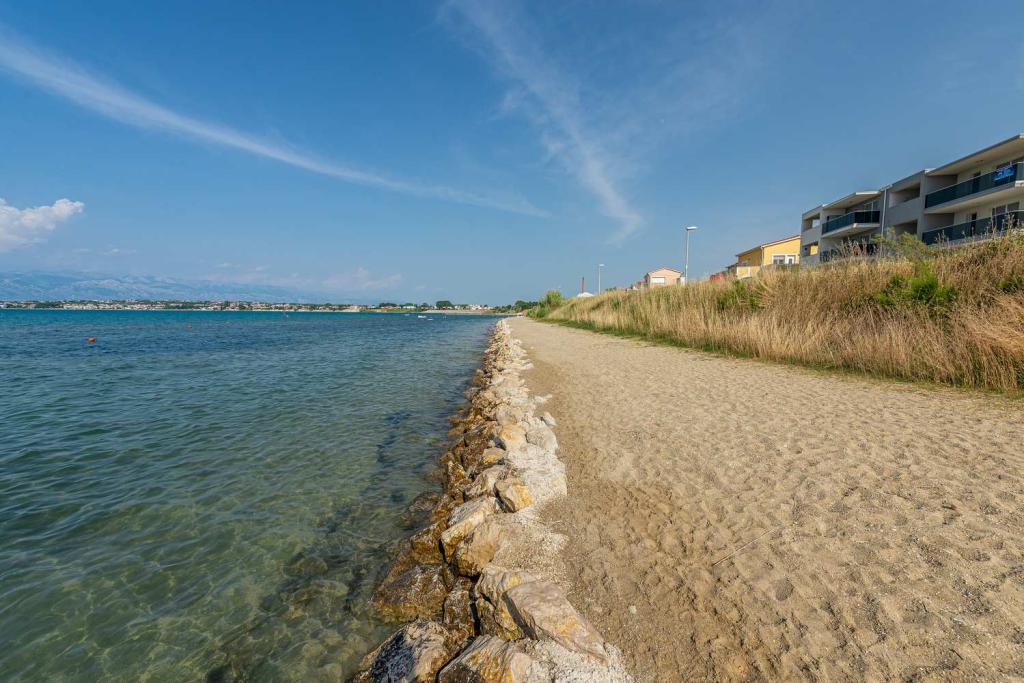 Eerste rij vanaf de zee! 10 meter van het voetgangersstrand. 5 minuten van het oude centrum van Nin. Modern appartement, mooi ingericht, zeer goed uitgeruste keuken (vaatwasser, broodrooster, waterkoker, elektrisch koffiezetapparaat, magnetron, koelkast met vriezer, oven, 4 inductiekookplaten). 1 slaapkamer met tweepersoonsbed + 1 slaapkamer met 2 eenpersoonsbedden. Douche en wasmachine. Fantastisch uitzicht op zee vanaf uw terras.