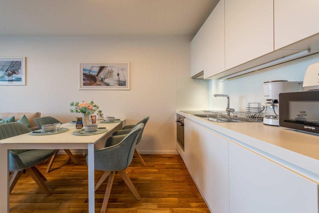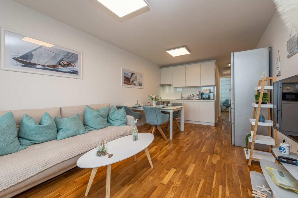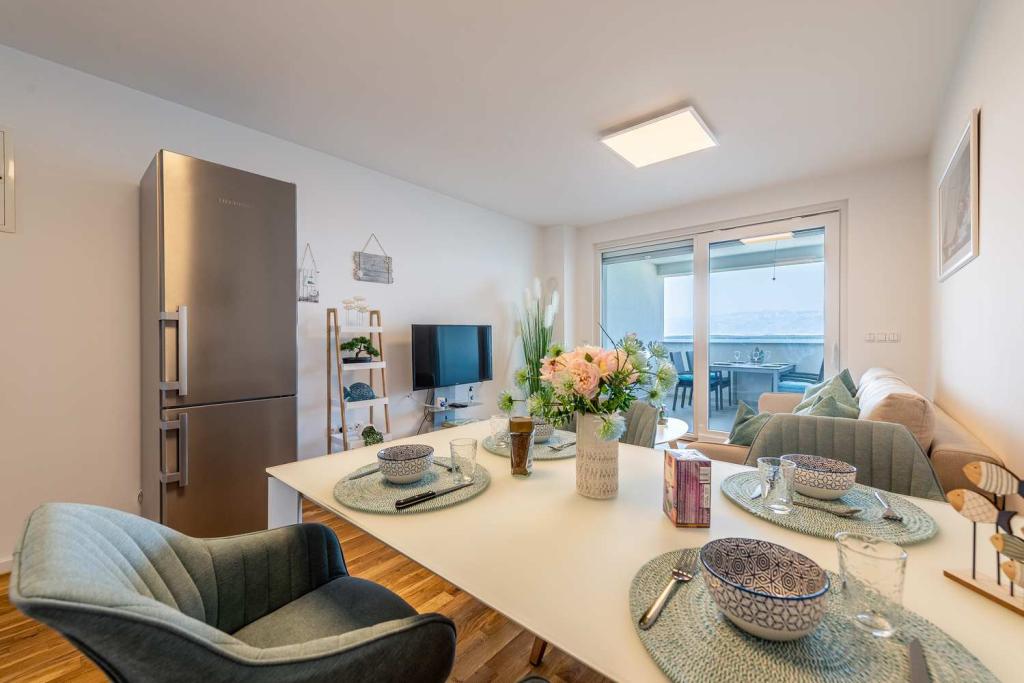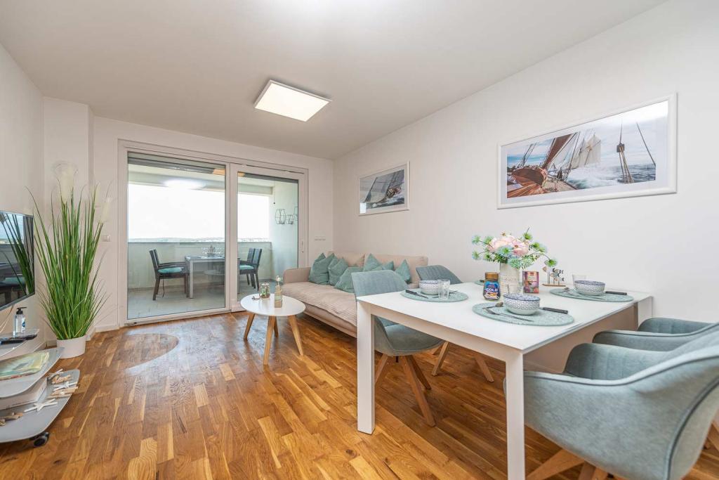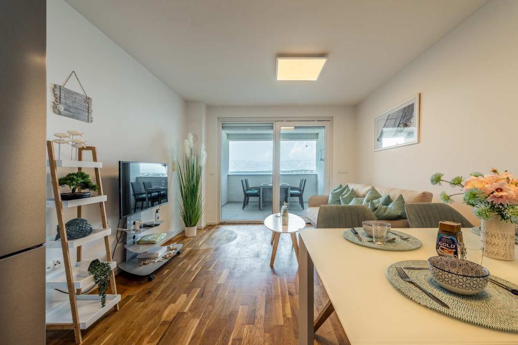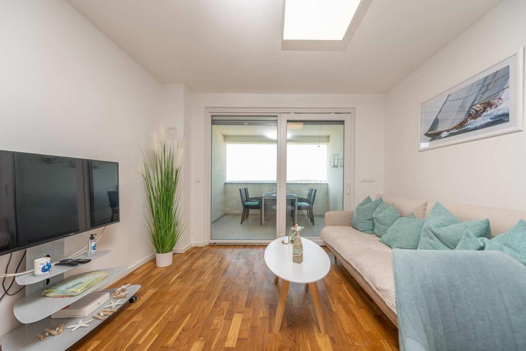 Eerste rij vanaf de zee! 10 meter van het voetgangersstrand. 5 minuten van het oude centrum van Nin. Modern appartement, mooi ingericht, zeer goed uitgeruste keuken (vaatwasser, broodrooster, waterkoker, elektrisch koffiezetapparaat, magnetron, koelkast met vriezer, oven, 4 inductiekookplaten). 1 slaapkamer met tweepersoonsbed + 1 slaapkamer met 2 eenpersoonsbedden. Douche en wasmachine. Fantastisch uitzicht op zee vanaf uw terras.