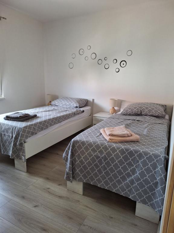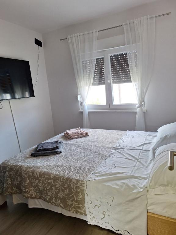 De appartementen bevinden zich in Nin, de nederzetting Ždrijac, in een rustige omgeving op 150 m van het strand (5 minuten lopen) en op 400 m van de stad (10 tot 15 minuten lopen langs het voetpad). Appartement 1... bestaat uit 3 kamers, waarvan één is uitgerust met een tv en één kamer (woonkamer voorzien van een tv en een apart toilet (met een wasmachine) en een extra bed, keuken voorzien van een vaatwasser, koelkast met vriezer, magnetron, waterkoker, badkamer met inloopdouche en hal en terras, terwijl er een gereserveerde parkeerplaats in de tuin is. Het appartement is geregistreerd voor 6 personen. Appartement 2... bestaat uit 2 kamers, waarvan één is uitgerust met een tv en een extra bed, en een keuken, badkamer en balkon. Er is een parkeerplaats in de tuin. Het appartement is geregistreerd voor 4 personen - de appartementen hebben snel internet en tv (Netflix...) Een 1 is duurder als er meer dan 4 personen zijn. Een 2 is duurder als er 4 personen zijn.
