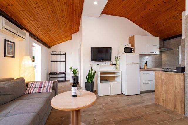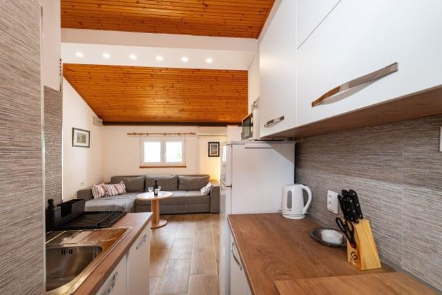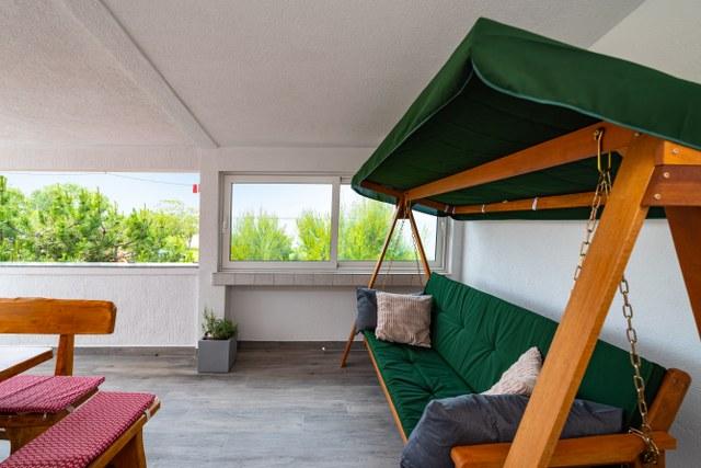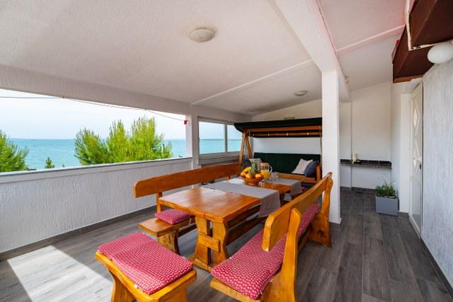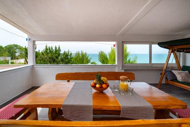 Zeer goede accommodatie. De eigenaren hebben nog groter appartement met een slaapkamer 3km / celkemn 7 bed / met uitzicht op zee en een groot overdekt terras op de 1e verdieping / begane grond ze wonen. Dus we hebben geleefd. Ze zijn zeer behulpzaam. Het strand ligt aan de overkant van de weg om haar te voldoen aan de trap. Het is haar snacks en 3 waterfietsen te huur. Een ander voordeel is het deel met natuurlijke schaduw. Het is een zandstrand, goed voor kleine kinderen, maar in de zee, goed en volwassenen zwemmen. Natuurlijk, dat trekt gezinnen met kinderen, het is te verwachten. Doe Nina, die ongeveer 1 km, de chodilko de normale weg, het was waarschijnlijk het enige nadeel.