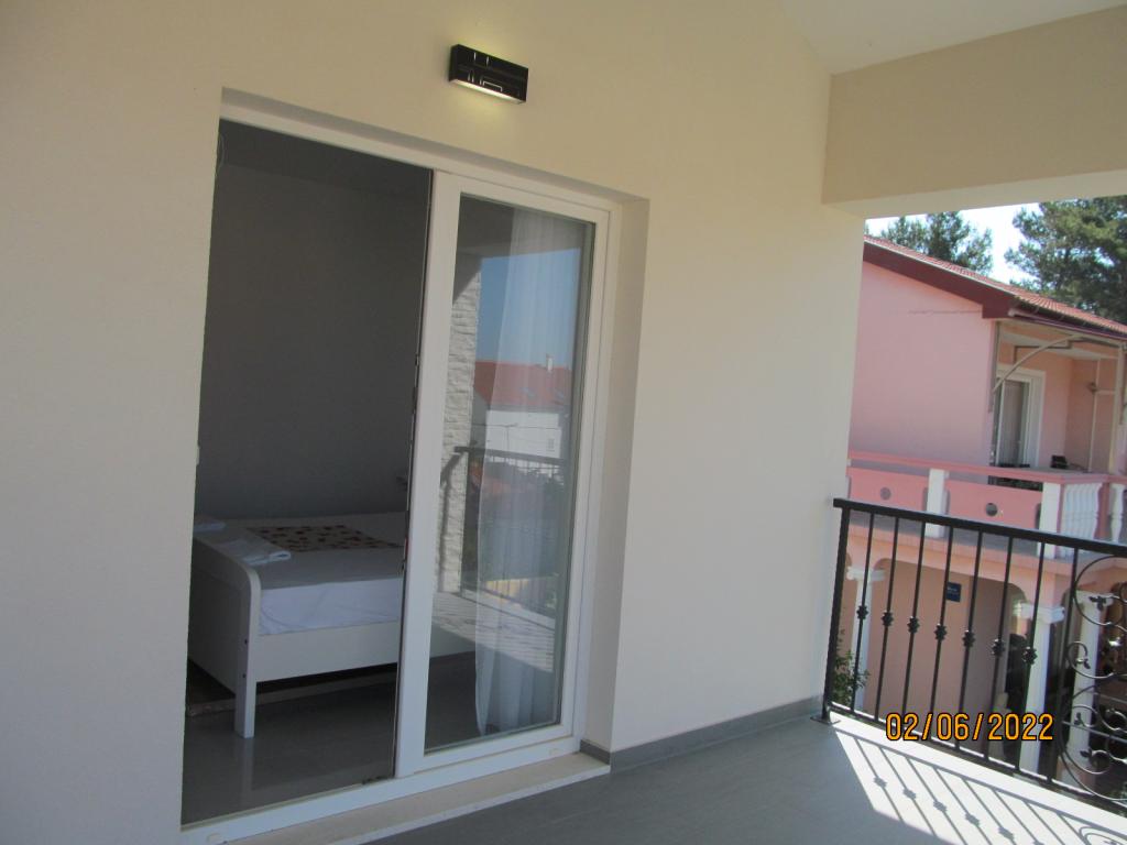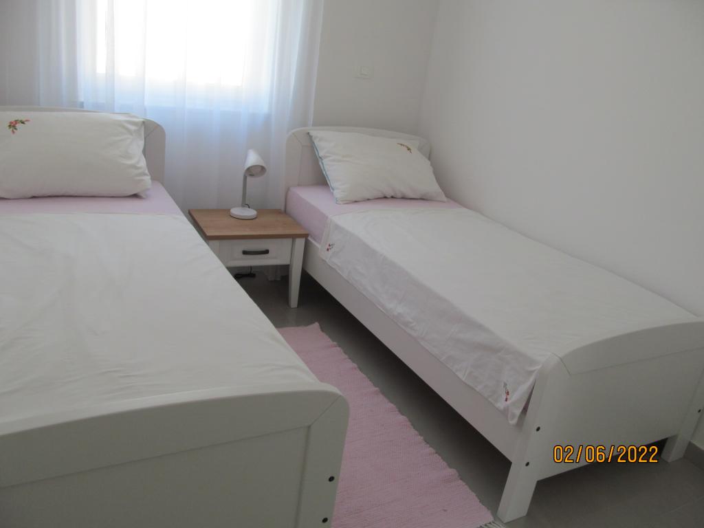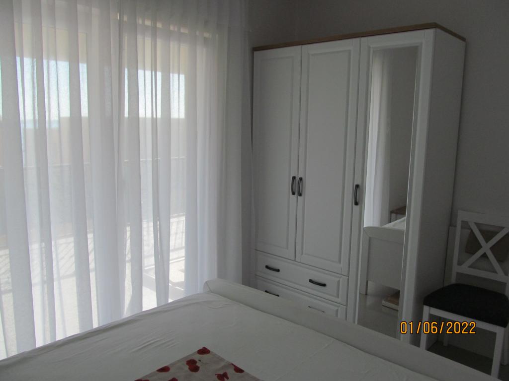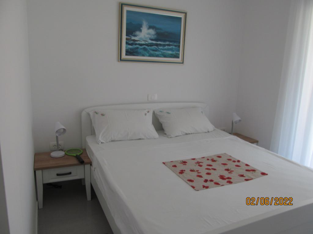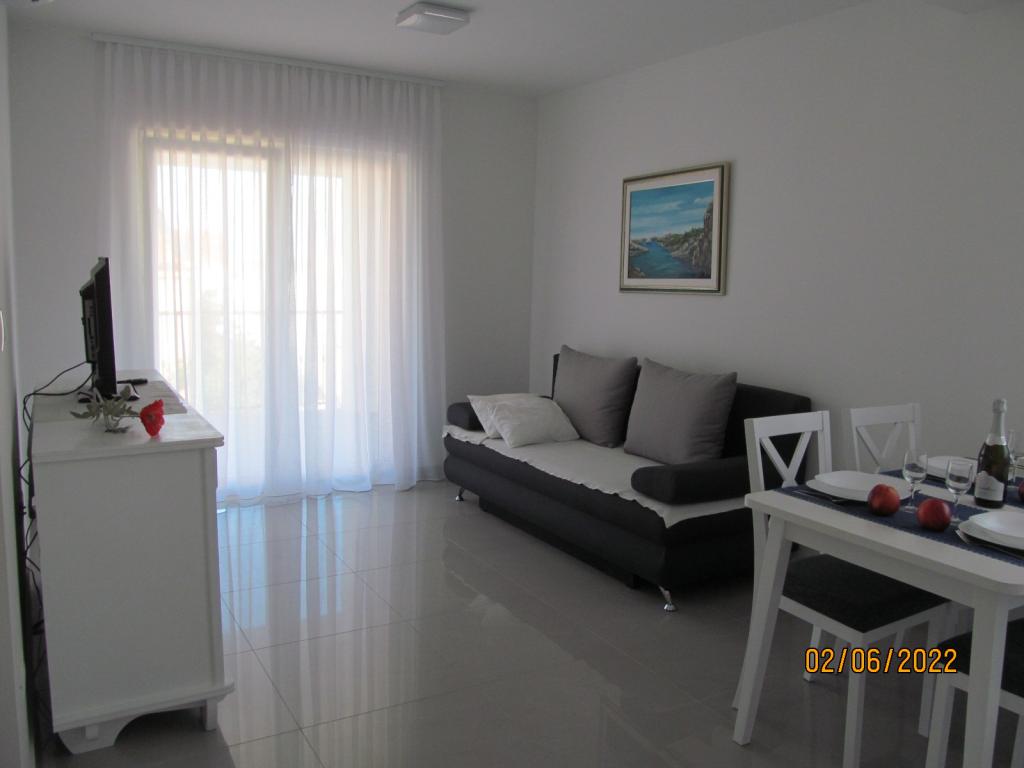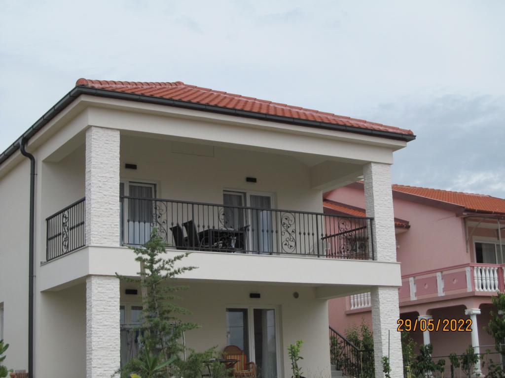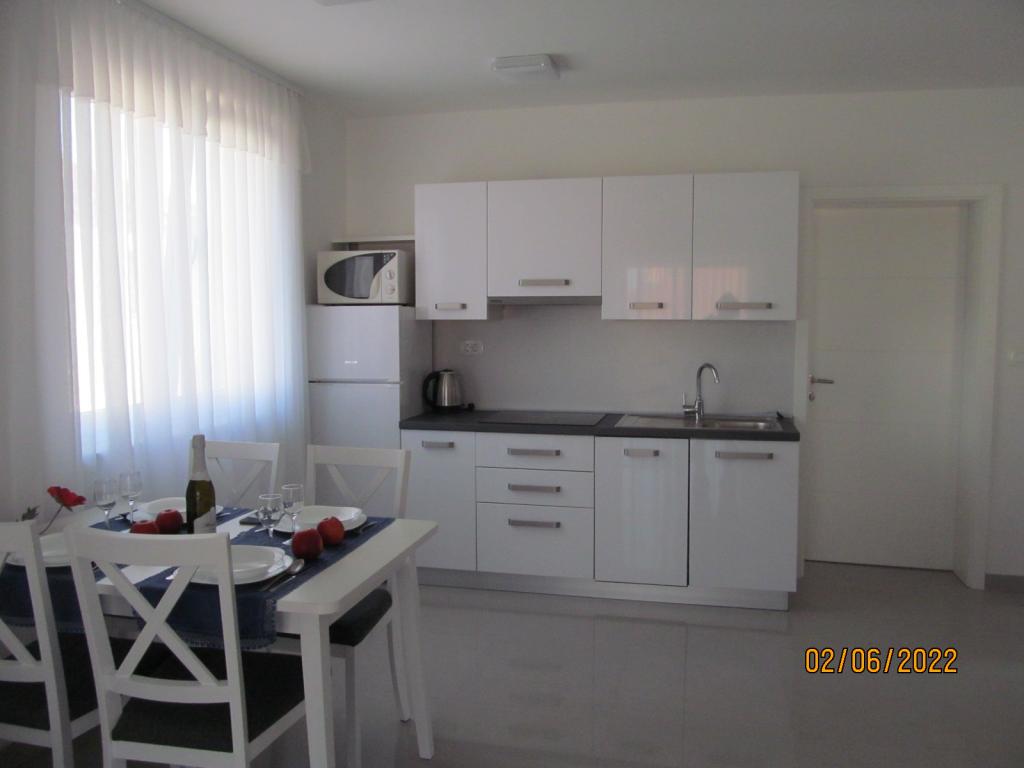 De appartementen zijn gelegen op de eerste verdieping van een nieuwe vrijstaande gezinswoning in een rustige straat, met eigen parkeerplaats en groene omgeving. Ze zijn voorzien van airconditioning en WiFi. Het huis ligt op 40 meter van de kust en het strand. APA1 - tweekamerappartement bevat twee aparte slaapkamers, een keuken met woonkamer, een badkamer met toilet en wasmachine en een terras van 22 m2. Eén slaapkamer heeft een tweepersoonsbed en de andere slaapkamer heeft twee eenpersoonsbedden. In de woonkamer staat een bank, ladekast en tv. Vanuit alle kamers van het appartement heeft u uitzicht op zee. De keuken heeft alles wat je nodig hebt om te koken: servies, 4x inductiekookplaat, magnetron, vaatwasser, waterkoker, koelkast met vriesvak. APA2 - eenkamerappartement bestaat uit een slaapkamer met een tweepersoonsbed, een keuken met woonkamer, een badkamer met toilet, een wasmachine en een balkon met uitzicht op zee. De woonkamer heeft een bank, kledingkast, ladekast en tv. De keuken heeft alles wat je nodig hebt om te koken: servies, 2x inductiekookplaat, magnetron, waterkoker, koelkast met vriesvak.