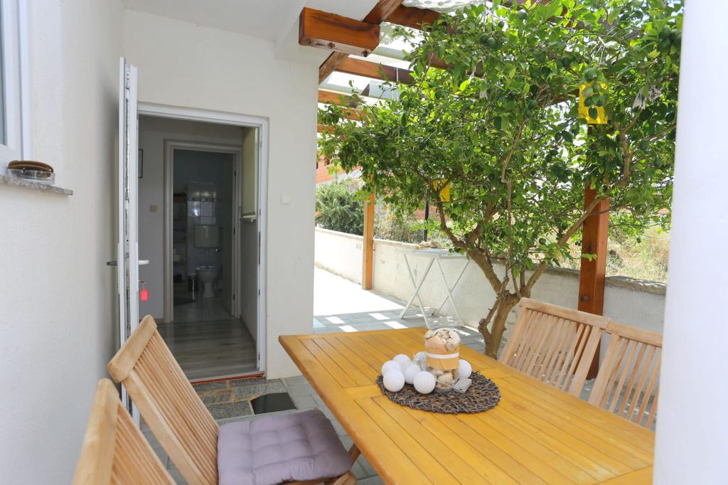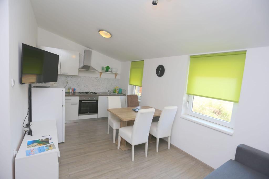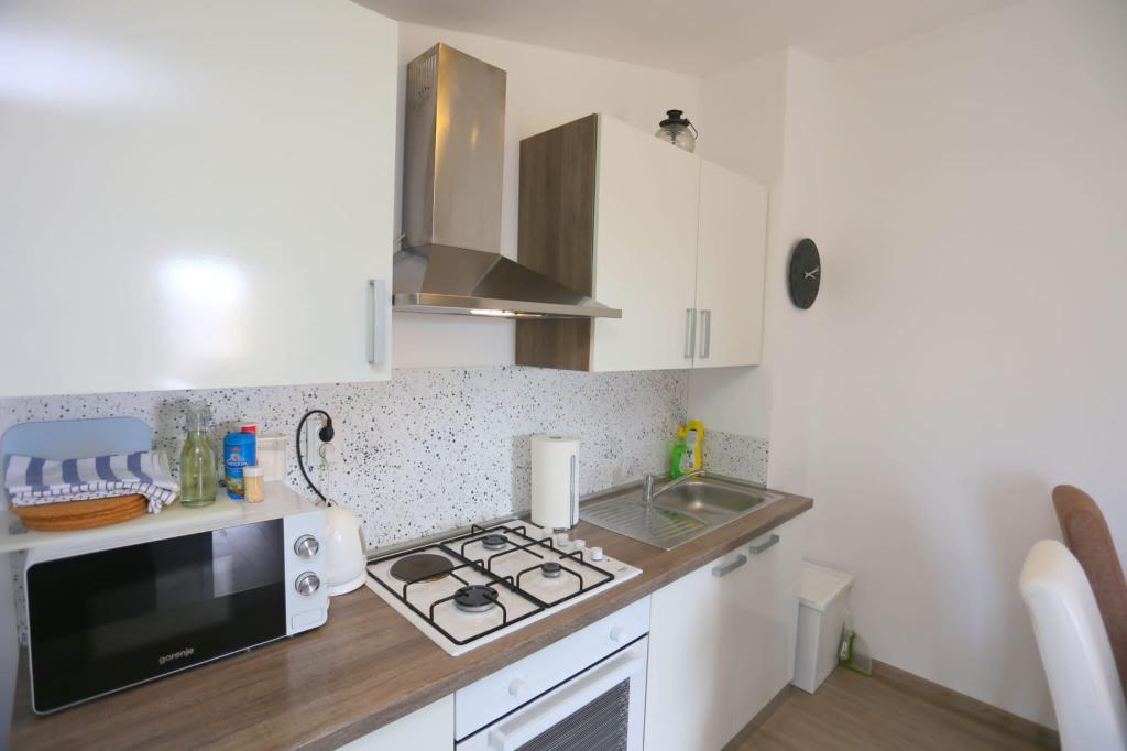 De appartementen bevinden zich in een huis met in totaal 4 wooneenheden en parkeergelegenheid voor 6 auto's. Het is 10 minuten lopen naar het strand, het dichtstbijzijnde restaurant en de winkel. De appartementen zijn volledig gemeubileerd en uitgerust. WiFi, gebruik van een buitendouche, airconditioning, beddengoed en handdoeken zijn aanwezig. Gasten kunnen gebruikmaken van een houtskoolgrill en een peka (voor het bereiden van maaltijden op de grill (gradela) of peka).