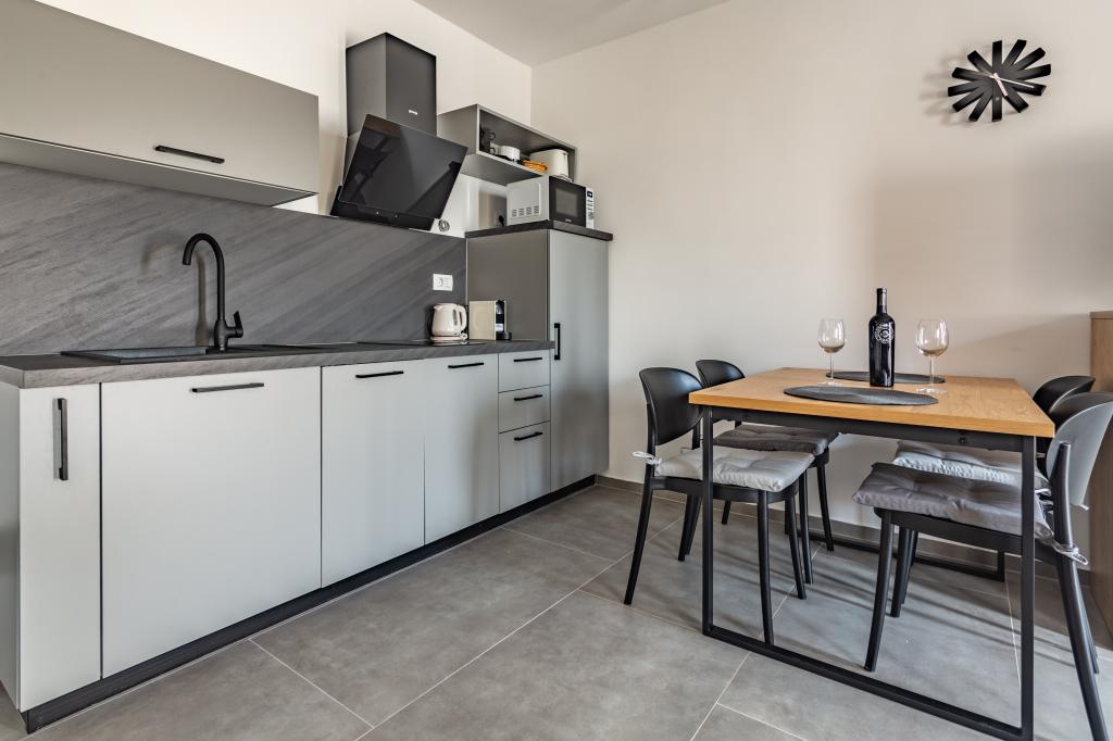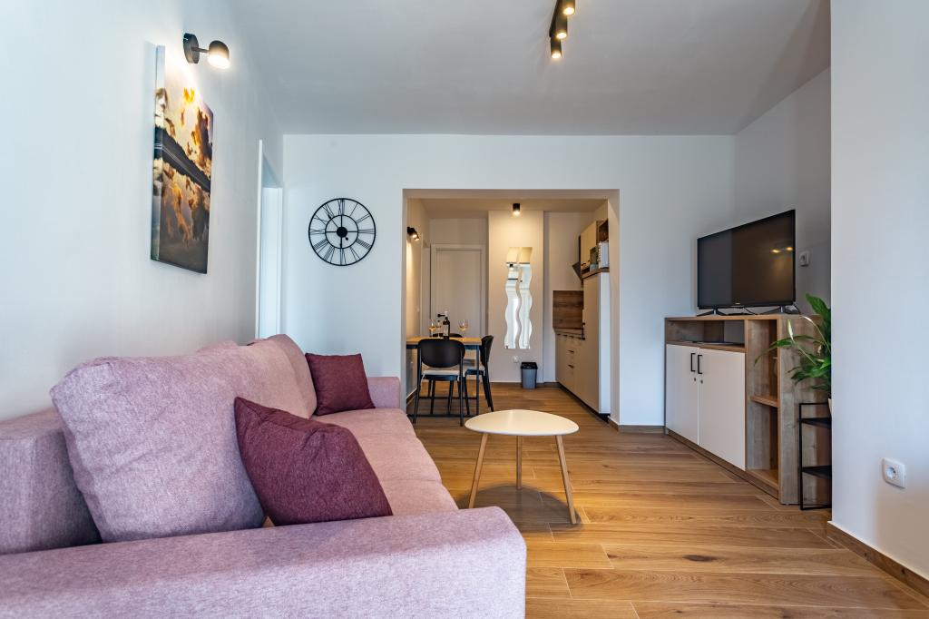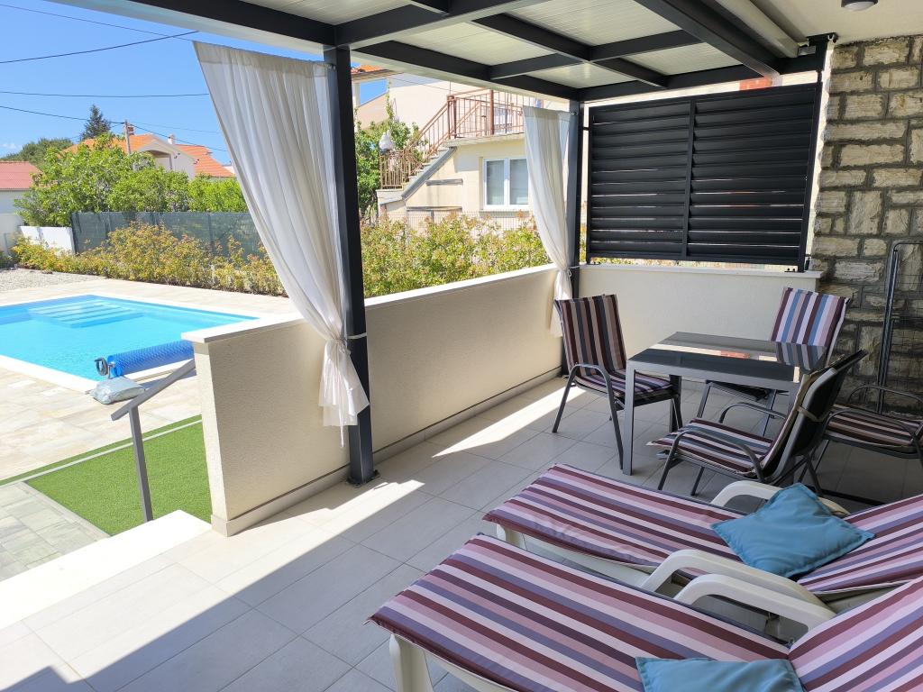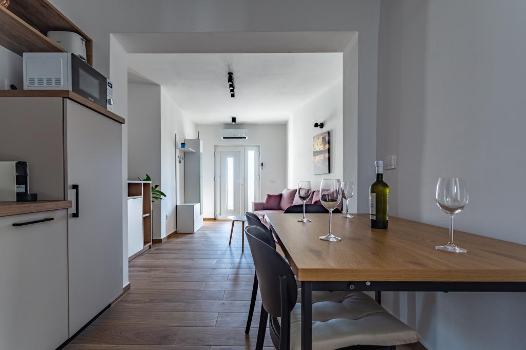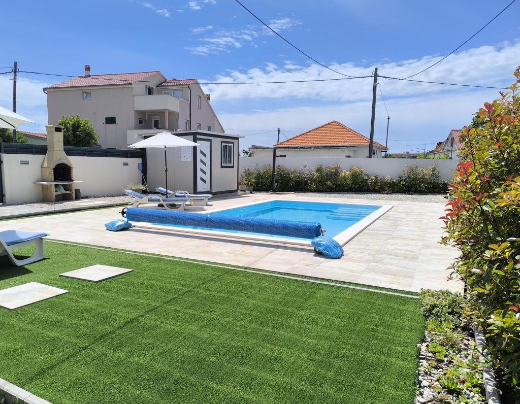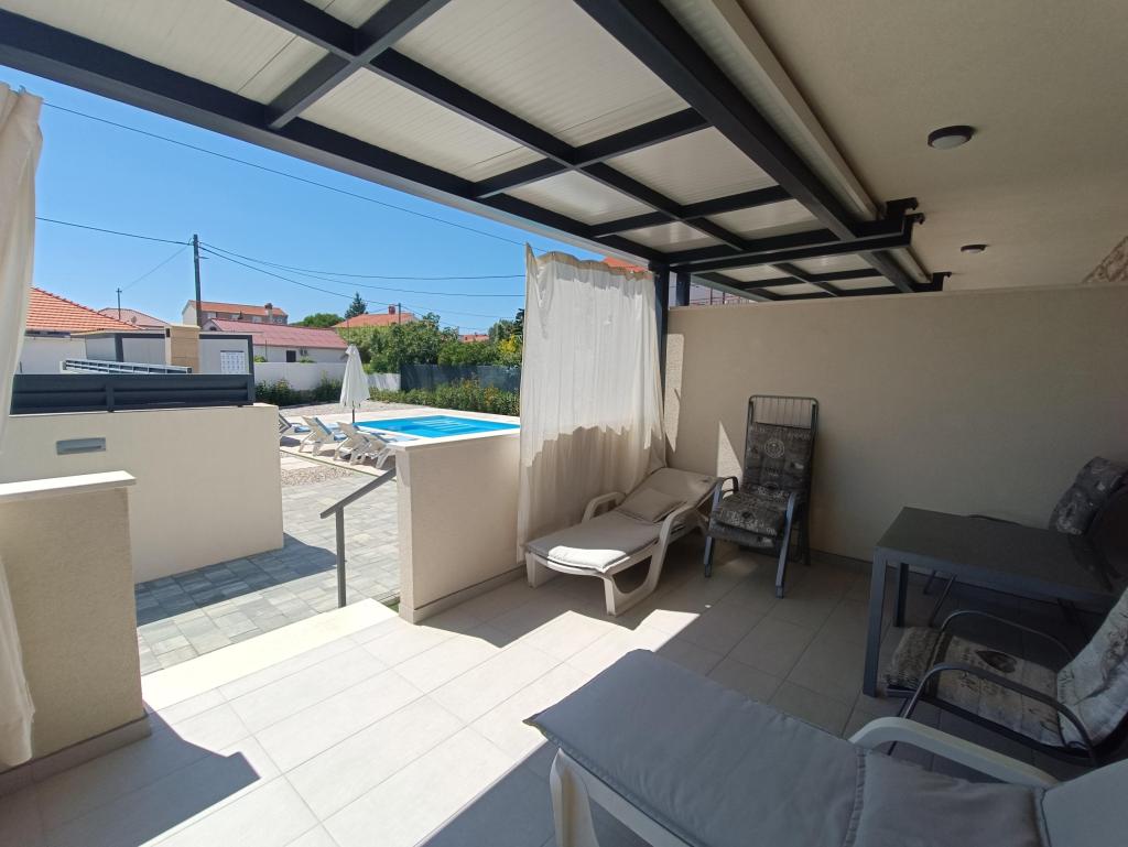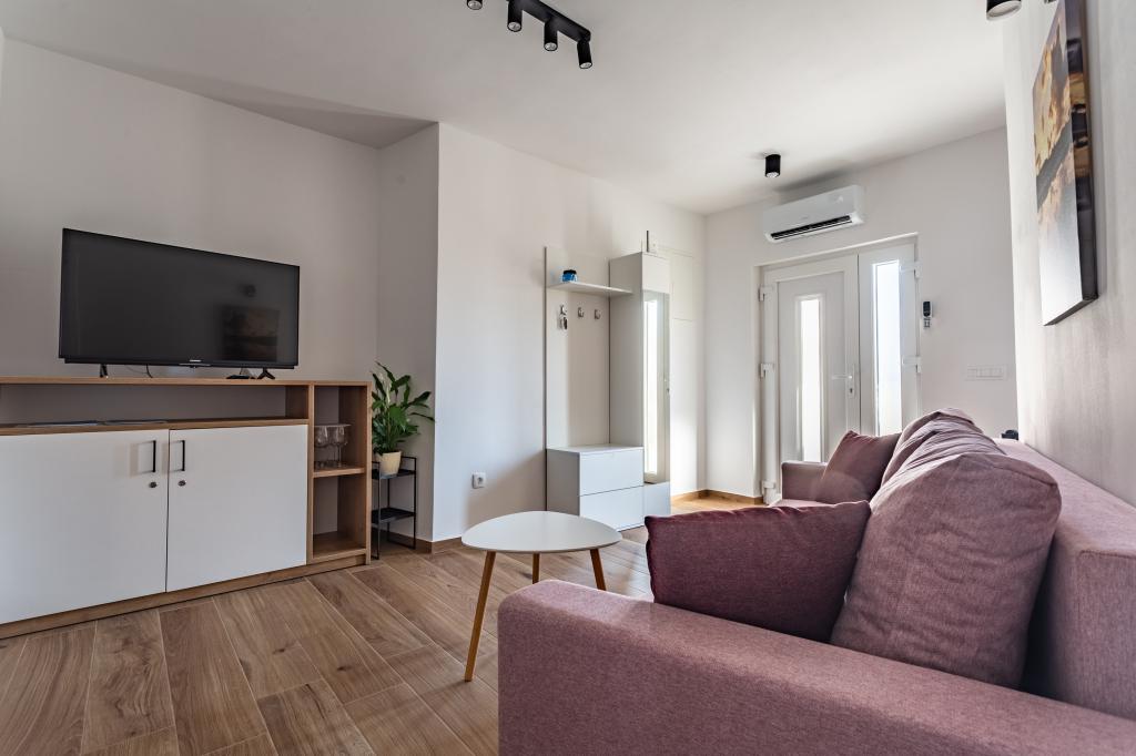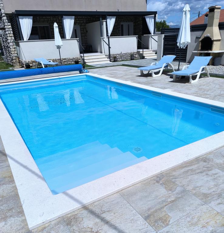 Verwarmd zwembad (gesloten van 15.10.2025 tot 1.5.2026) Welkom bij Royal Place Apartments, appartementen gelegen in het charmante koninklijke stadje Nin, op slechts 16 km van de historische stad Zadar. We bieden twee luxe appartementen aan. Een appartement met één slaapkamer (familiekamer, tweepersoonsbed + eenpersoonsbed) en een appartement met twee slaapkamers op de begane grond, op een rustige locatie, op slechts 200 meter van de pittoreske boulevard, lokale restaurants en het stadscentrum. Het strand ligt op 700 meter afstand. De grote verdieping van het gebouw omvat een rustige, omheinde binnenplaats vol weelderige mediterrane planten. Daarnaast is er een verwarmd zoutwaterzwembad, een zonneterras met ligstoelen en parasols, een buitendouche en een barbecue. De bovenverdieping van het gebouw is niet toegankelijk.