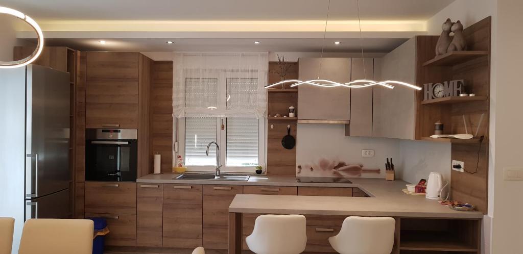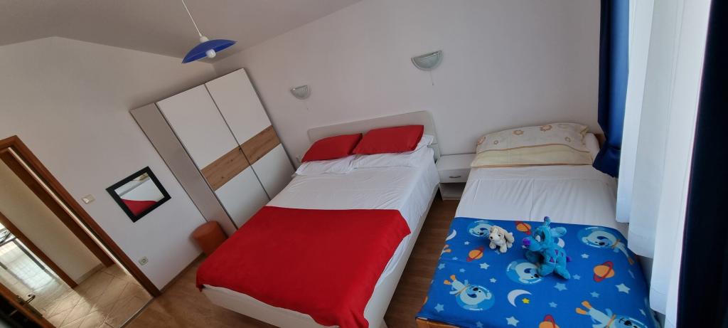 Het familiehuis is gelegen in Vrsi, 20 km van Zadar, ongeveer 5 km van de koninklijke stad Nin. De appartementen bevinden zich op de eerste en tweede verdieping van het huis, vanwaar u een prachtig uitzicht op de zee heeft, die op slechts 150 meter afstand ligt. Het huis heeft een grote tuin en zes parkeerplaatsen voor de gasten. De afstand van de winkels, slager, bakker, markt, restaurant, busstation is ongeveer 100 meter. Bezoek ons en geniet van de heldere zee, de prachtige zonsondergang en voel u thuis! De stad heeft een rijke 34 km lange kust, met diverse stranden.