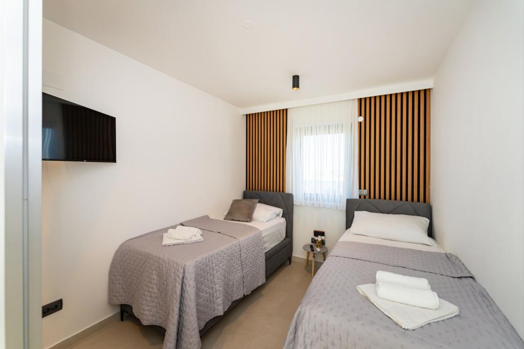 Villa LaMag, een moderne nieuwbouwvilla, is gelegen in het prachtige, rustige dorpje Vrsi Zukve, op 20 km van Zadar en 5 km van de koninklijke stad Nin, en op ongeveer 2,5 uur rijden van Zagreb. Het strand ligt op slechts 3 minuten lopen, het dichtstbijzijnde restaurant op slechts 400 meter afstand en de supermarkt op minder dan een kilometer afstand. Verken de prachtige zandstranden van Nina en Ljubača (10 minuten rijden) of bezoek de nabijgelegen eilanden Pag en Vir, die met elkaar verbonden zijn door een brug. De historische charme van de oude stad Zadar, met zijn smalle straatjes en culturele pareltjes, ligt op slechts 25 minuten rijden. Dit maakt uw appartement de perfecte uitvalsbasis om de wonderen van deze ongelooflijke kuststreek te ontdekken.