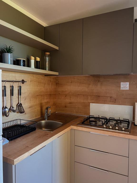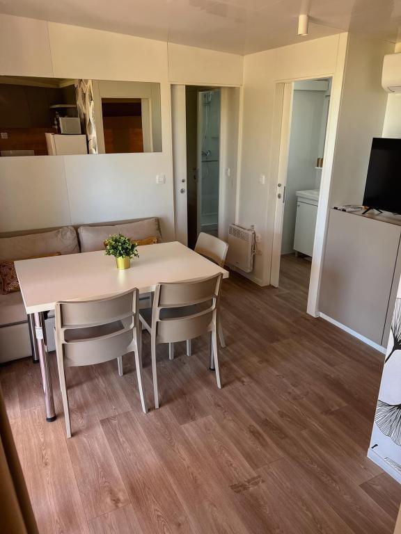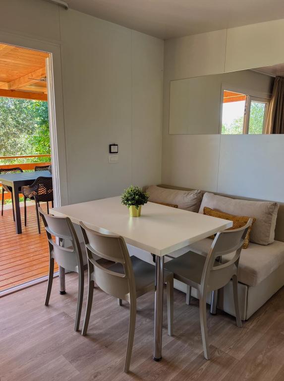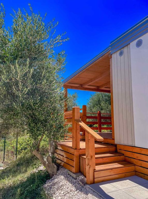 Bij de ingang van Camping Nin staan modern ingerichte stacaravans. Het terras biedt uitzicht op zee en de oude binnenstad van Nin. De faciliteiten bevinden zich op 5 minuten lopen van het strand van Kraljičina en op 10 minuten lopen van het centrum en alle benodigde voorzieningen. De stacaravans liggen in een rustige en ontspannen omgeving, omringd door olijfbomen.