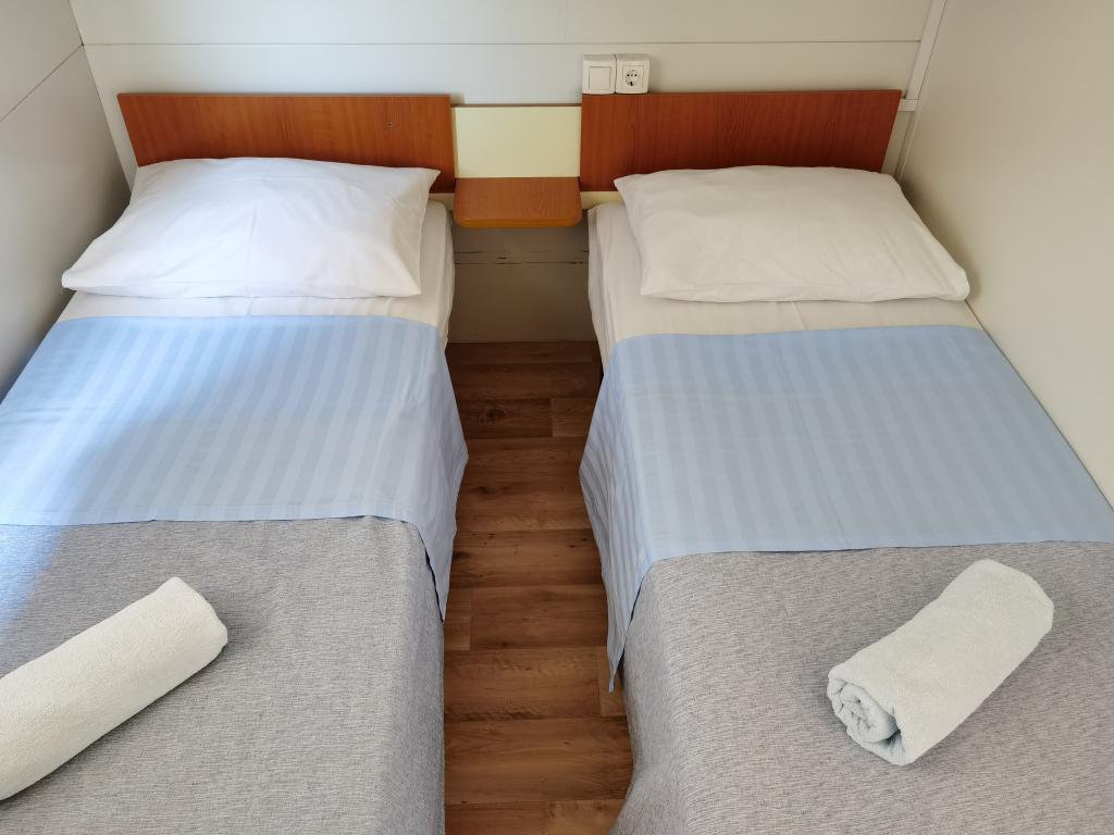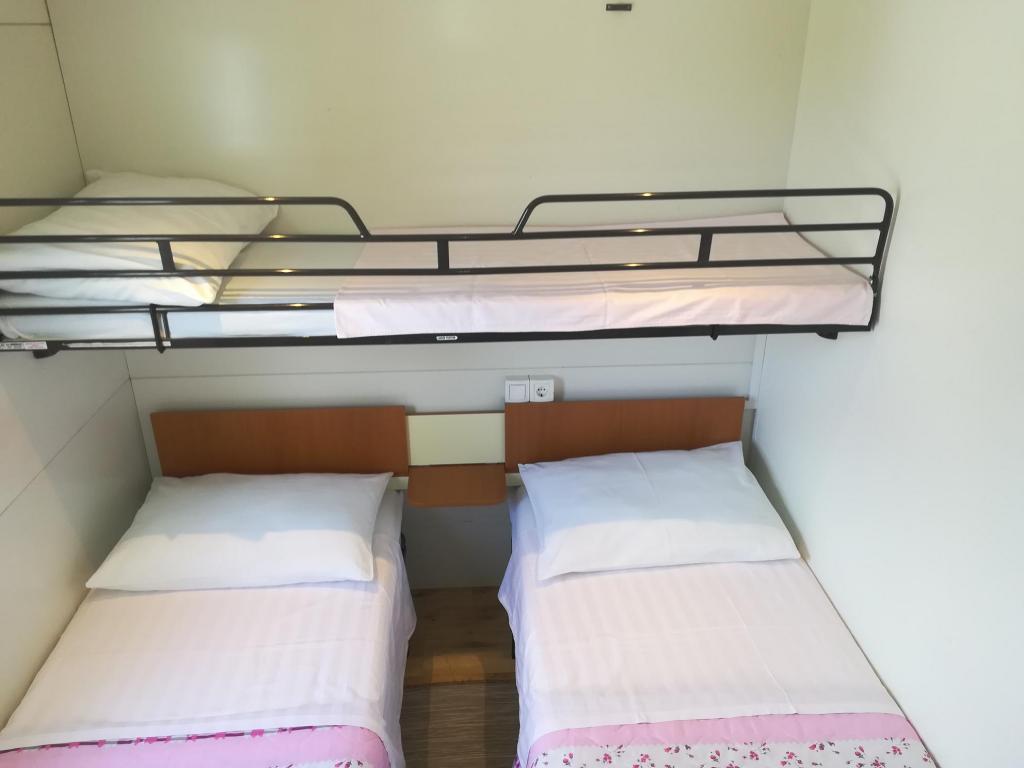 Bij de ingang van Camping Nin staan modern ingerichte stacaravans. Het terras biedt uitzicht op de zee en de oude binnenstad van Nin. De faciliteiten bevinden zich op 5 minuten loopafstand van Queen's Beach en op 10 minuten loopafstand van het centrum en alle benodigde voorzieningen. De huizen liggen in een rustige en ontspannen omgeving, omringd door olijfbomen.