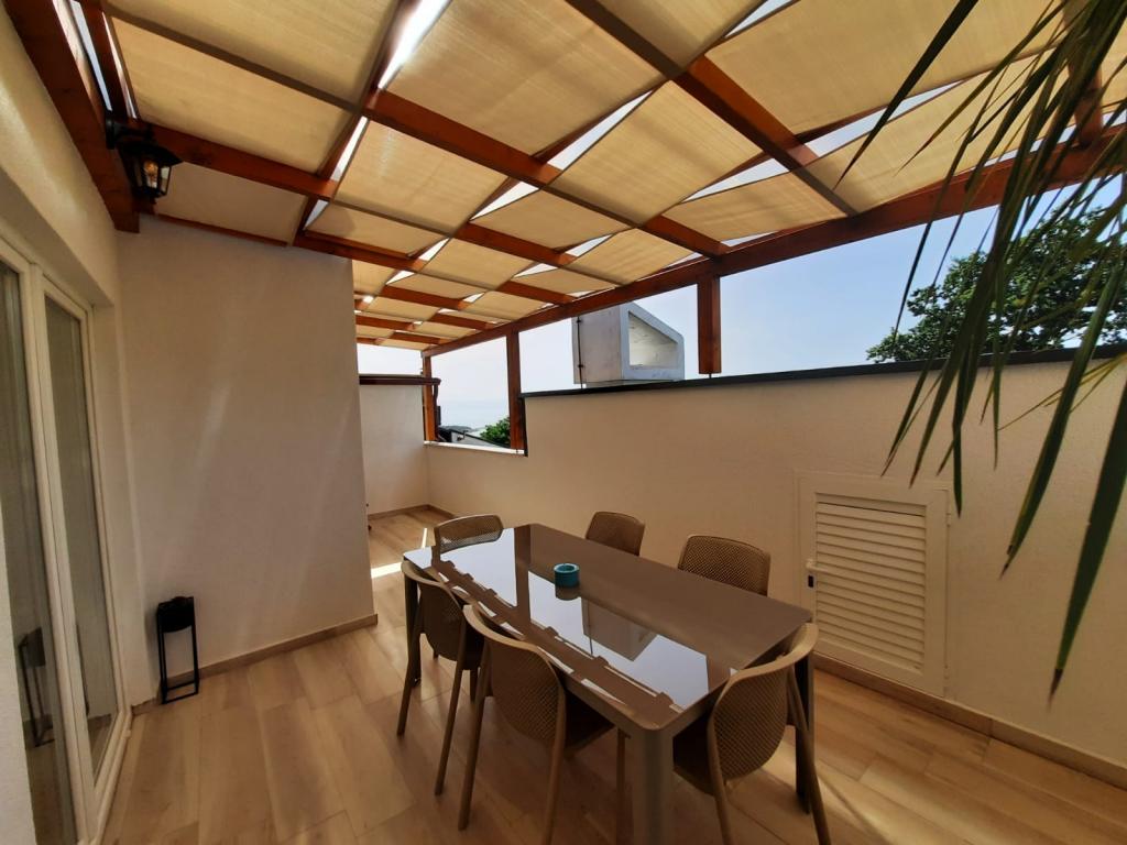 Het appartement is volledig nieuw ingericht met twee slaapkamers, woonkamer, eetkamer, badkamer, hal en terras met uitzicht op zee. Op het terras bieden we ligstoelen, een grote tafel voor 6 personen en een barbecue. Het appartement is gelegen in Kijac, op ongeveer 1 km afstand van het centrum van Njivice. Het is uitgerust met twee airconditioners. De zee ligt op slechts 200 meter afstand.