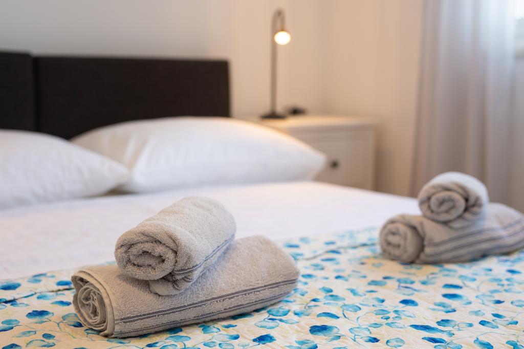 Modern ingerichte appartementen in een rustige buurt, gelegen in het centrum van de stad. Het appartement is verdeeld over twee verdiepingen en heeft een totale oppervlakte van 70 m². Op de eerste verdieping bevinden zich de slaapkamers, elk met een eigen badkamer. Op de begane grond is een ruime keuken met een woonkamer en een klein toilet. De accommodatie ligt op 2 minuten loopafstand van het strand, winkels en het centrum. Er is parkeergelegenheid voor drie auto's op eigen terrein, gratis te gebruiken. Huisdieren zijn toegestaan na voorafgaande afspraak en onder constant toezicht van de eigenaar.