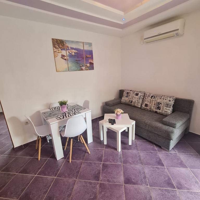 Het ligt erg ver van de zee. Het is moeilijk bereikbaar. De eigenaar vroeg om onze identiteitsbewijzen voordat we zelfs maar hadden uitgepakt en we moesten betalen. We hebben de bank in dezelfde ruimte als de keuken gestofzuigd, er lag veel stof. We moesten het bed opmaken. De douchecabine in de badkamer viel uit elkaar, het gedeelte tussen de wastafel en de cabine was, op zijn zachtst gezegd, smerig. De rand van de cabine ook. De lade van de kledingkast in de badkamer viel uit elkaar. Er is geen stopcontact in de keuken, ik kon alleen water koken op de vensterbank.