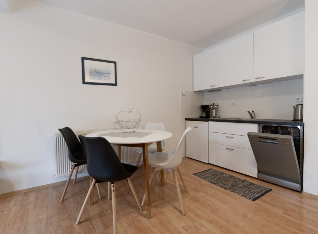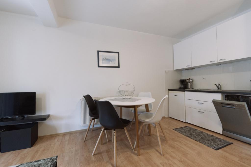 De moderne appartementen liggen in het kleine vissersdorpje Njivice, op het eiland Krk. Njivice ligt op slechts 11 km van de luchthaven van Rijeka. De accommodatie ligt op 3 minuten loopafstand van het stadscentrum en de prachtige kiezelstranden waar u kunt ontspannen en genieten van de zon en de zee. De plek is ideaal voor gezinnen met kleine kinderen en mensen die van de frisse lucht willen genieten. De appartementen bestaan uit een slaapkamer, een badkamer, een ruime woonkamer met keuken en eetkamer, een balkon en een prachtig ruim terras. Ideaal voor een kopje koffie in de ochtend, maar ook om 's avonds te genieten van de frisse lucht uit het bos. Dankzij de slaapbank in de woonkamer is er plaats voor twee extra personen. De studio bestaat uit een woonkamer met een bed, een eetkamer en een aparte keuken, een aparte badkamer en een klein overdekt terras voor de ingang (20m2).