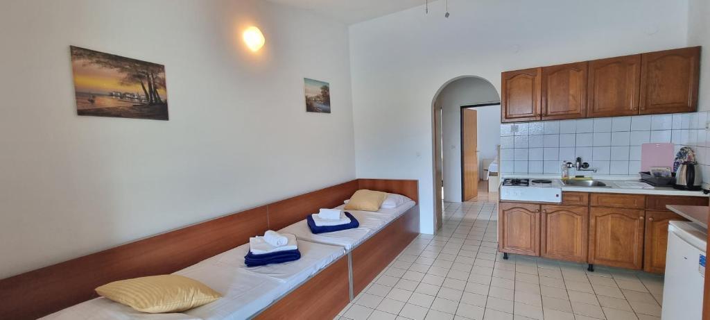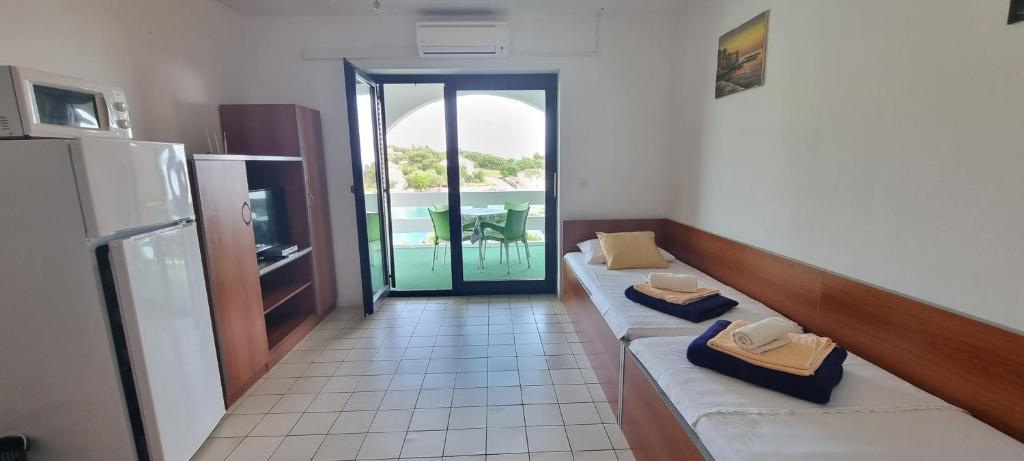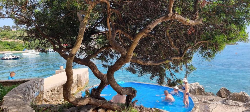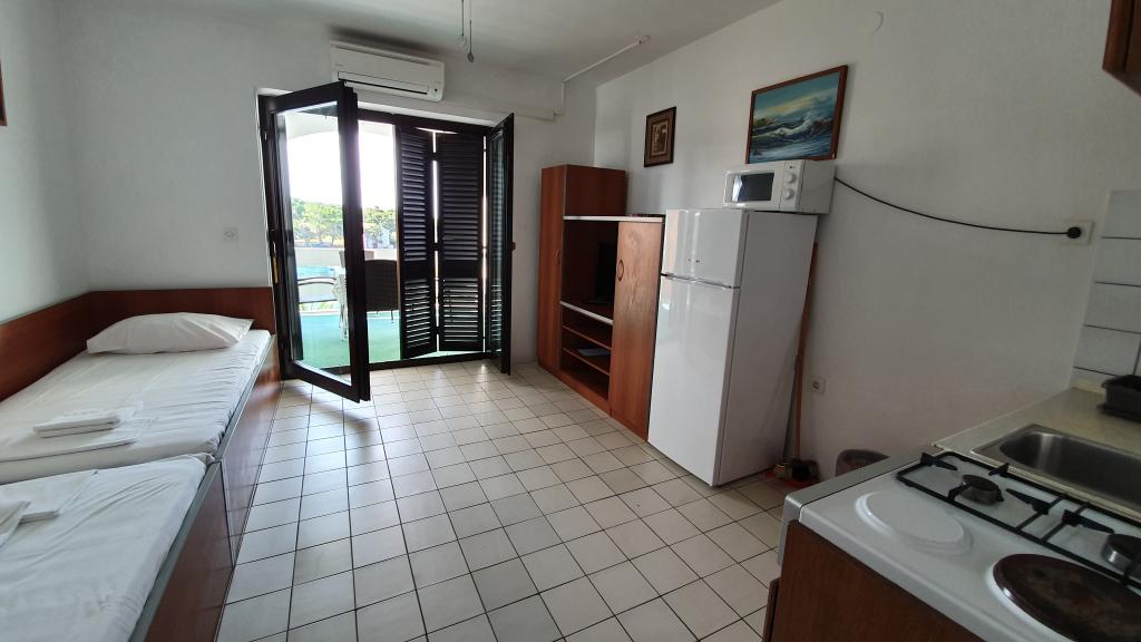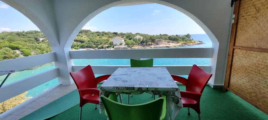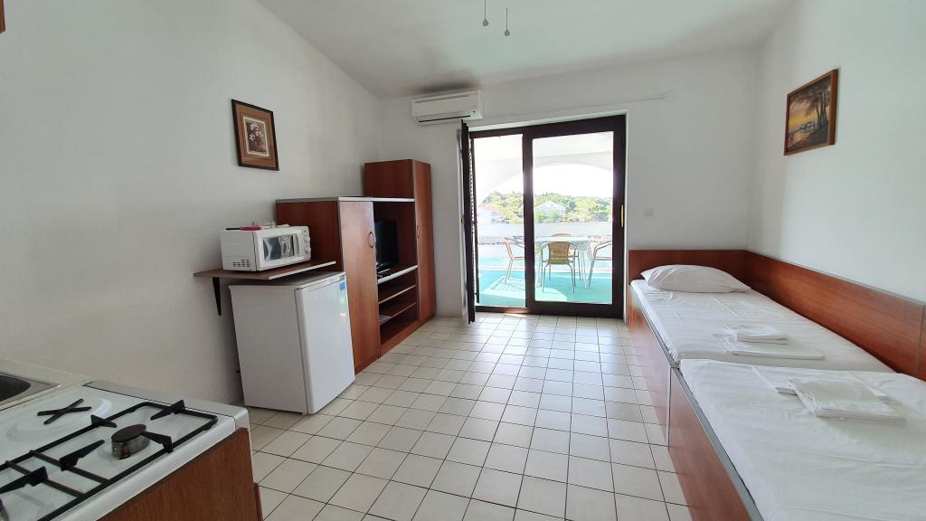 Volledig en modern ingerichte appartementen in de groene omgeving van het eiland, gelegen op de eerste rij met een prachtig uitzicht op de zee. De faciliteit ligt op 8 km van de stad Novalja. Een zandstrand aan de linkerkant van het gebouw, een betonnen strand voor het gebouw met een zwembad en 5 min. lopen grote zanderige. Aanlegplaats voor boten, grote barbecue, eigen parkeerplaats en privéstrand. De mogelijkheid om het hele gebouw buiten het seizoen te huren voor weekendfeesten of feesten in overleg.