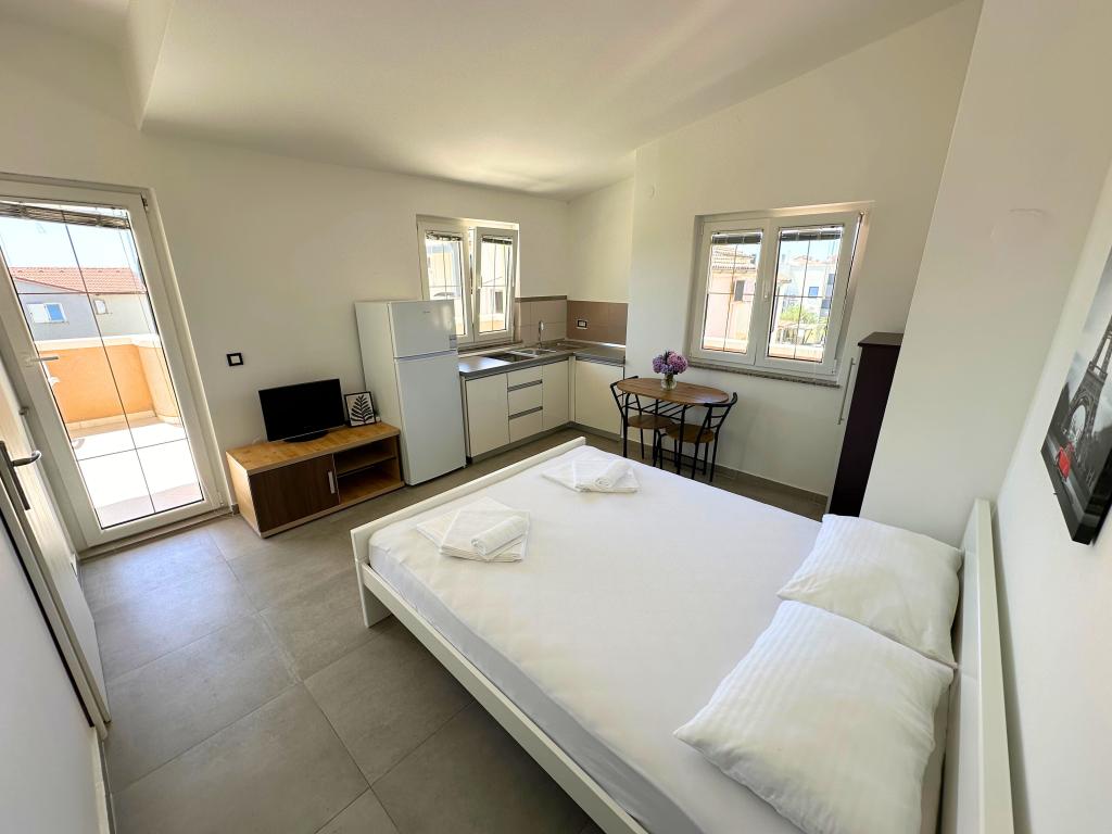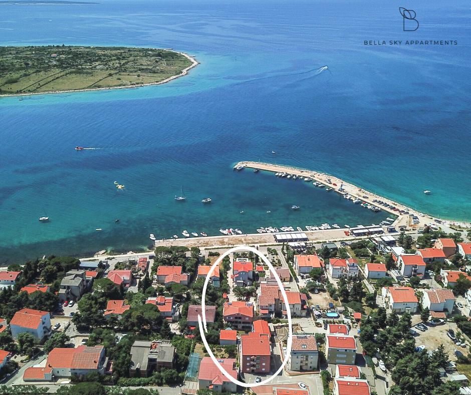 De Bella Sky-appartementen liggen niet ver van het centrum van Novalja en bestaan uit 5 huizen met in totaal 29 appartementen. Het eerste huis ligt direct aan zee, terwijl de andere huizen in een rij achter het eerste huis staan. De appartementen hebben een capaciteit voor 2-6 personen, zijn standaard uitgerust, met uitzicht op zee, gratis parkeergelegenheid, een zwembad en een ruimte voor gezelligheid en een barbecue in de tuin. In de buurt van het appartement zijn er talloze restaurants en cafés, evenals stranden met tal van extra activiteiten.