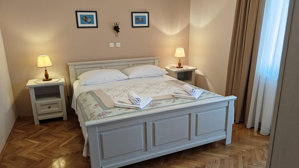 Beste gasten, Welkom op onze homepage. Als u een vakantie plant op het zonnige eiland Pag in de Kroatische Adriatische Zee, zijn wij een van de beste mensen om contact op te nemen. In "Villa Jasna" in Novalia kunt u een onvergetelijke en ontspannende vakantie doorbrengen in een familiale sfeer. Onze appartementen zijn altijd goed onderhouden en hebben elk een eigen kitchenette en balkon. Naast belangrijke voorzieningen zoals airconditioning, zwembad, WiFi, satelliet-tv, pooltafel en privéparkeergelegenheid, heeft u ook de beschikking over een barbecue. Onze vakantieappartementen zijn rustig gelegen, maar toch dichtbij het stadscentrum. Binnen een paar honderd meter bereikt u de zee, winkels, restaurants en het centrum van Novalja. Wij, de familie Vrtodušić, hebben zeer goede verbindingen in Pag. Uiteraard profiteert u als onze gast hier ook van als u speciale verzoeken heeft, advies nodig heeft voor uw vrijetijdsbesteding of als er sprake is van calamiteiten (bijvoorbeeld medisch). Wij kunnen ter plaatse met u communiceren in het Duits, Engels, Pools en Tali