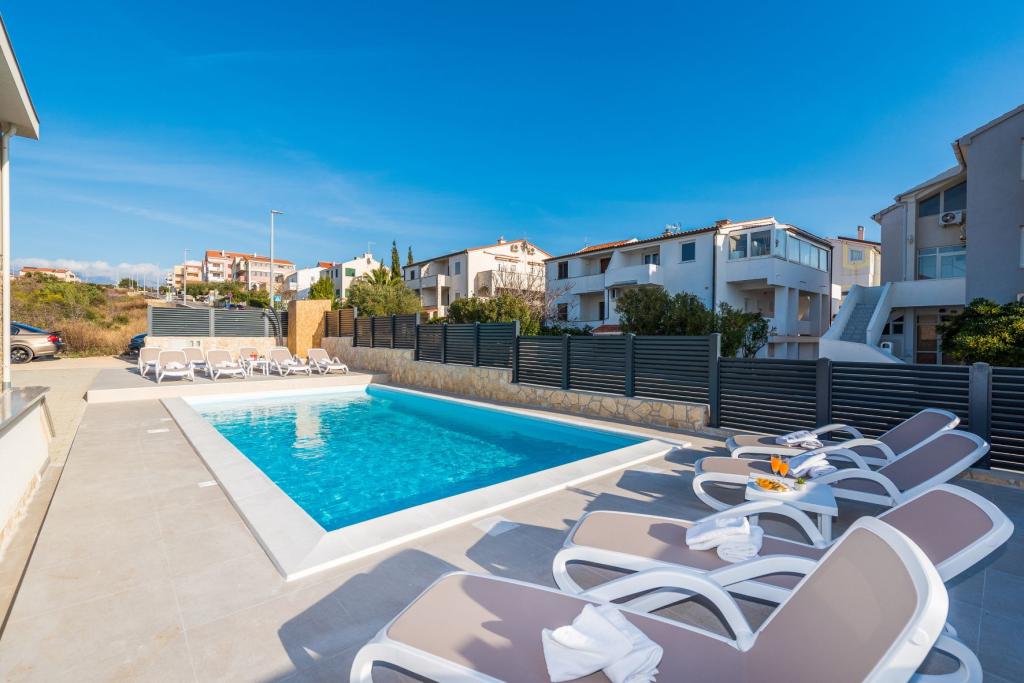 Beste bezoekers! In een rustig deel van Novalja, op een aantrekkelijke locatie nabij het zandstrand Babe, bieden wij accommodatie in 5 nieuw gebouwde appartementen op een rij. Alle appartementen zijn verdeeld over 2 verdiepingen, met een prachtig uitzicht op zee, modern ingericht en uitgerust met airconditioning, TV / SAT, internet (WIFI) en parkeerplaats, en een gedeeld zwembad voor alle gasten. Wees onze gasten en breng een aangename vakantie door in Novalja. De familie Tamarut