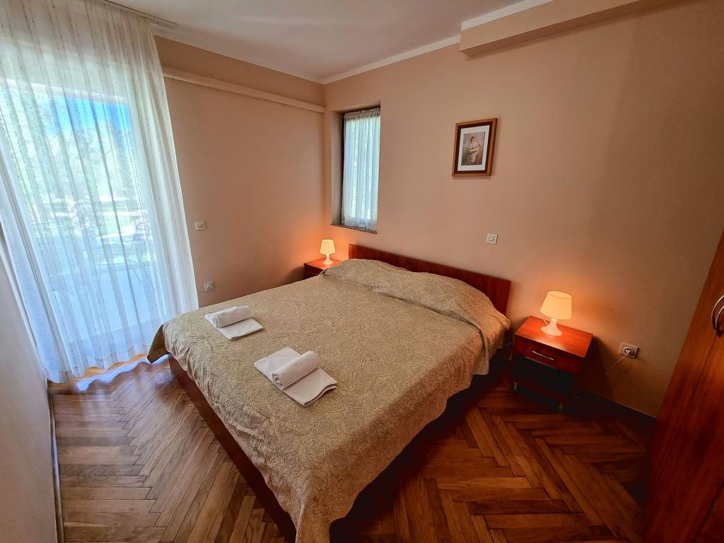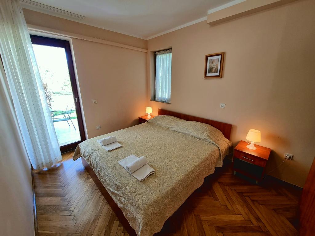 Geweldige locatie, een beetje verwijderd van de drukte van de stad, de eigenaren zijn geweldig, onopvallend. Het appartement heeft een aparte ingang, voor het huis is er een grote tuin met ligbedden en speelplaatsen voor kinderen, en de zee is heel dichtbij.