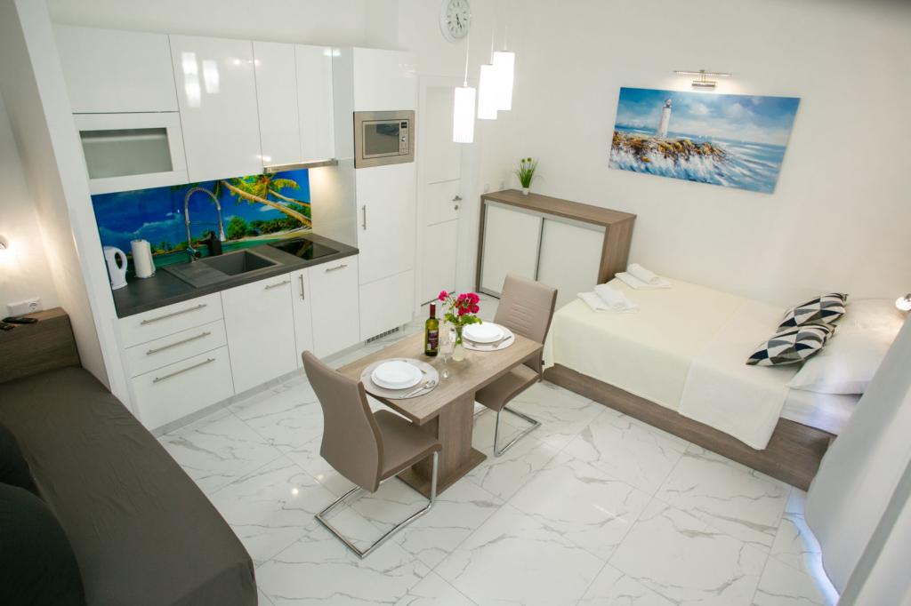 Modern ingerichte appartementen met een volledig uitgeruste keuken, waterkoker, broodrooster, magnetron, koffiezetapparaat. Elk appartement heeft een strijkijzer, een kluis en een haardroger.