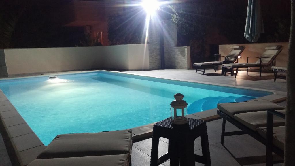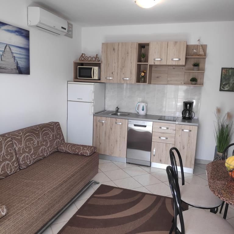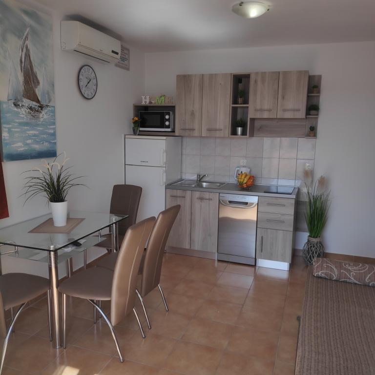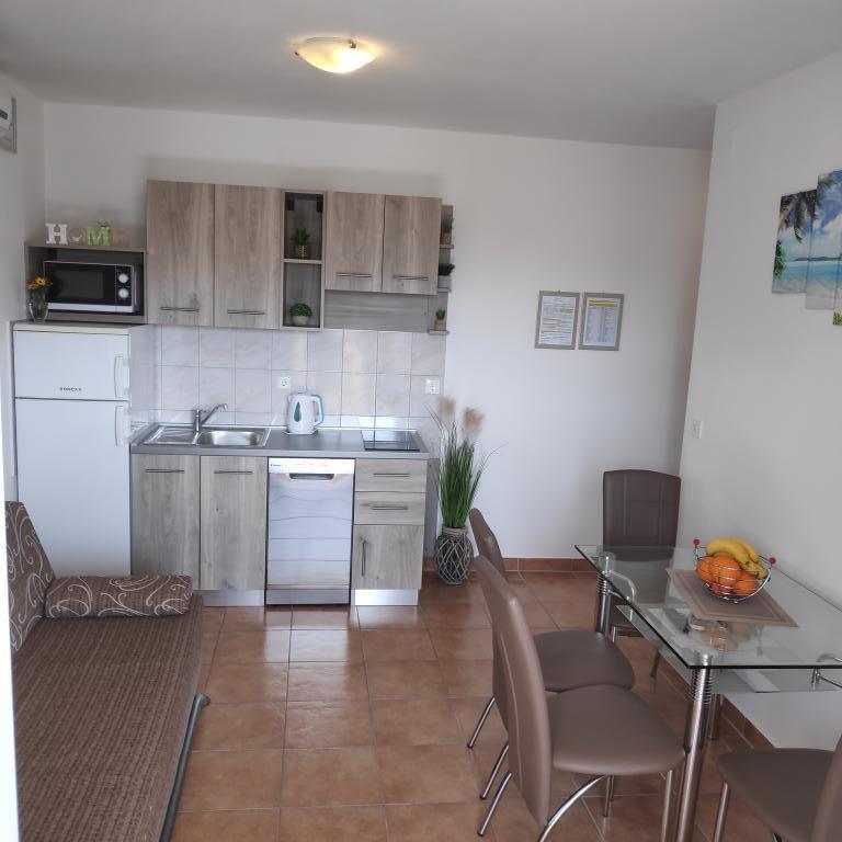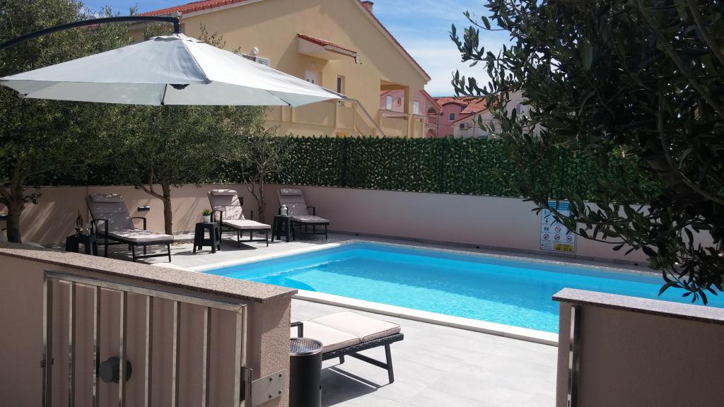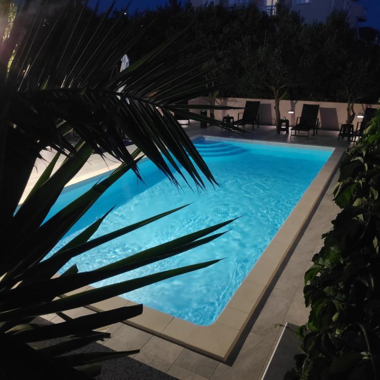 Villa Petra & Sanja (Villa met zwembad) ligt in NOVALJA op het prachtige eiland PAGU, midden in een tuin, omgeven door olijfbomen en palmbomen. Gasten hebben toegang tot een buitenzwembad, gebruik van een barbecue, gratis Wi-Fi, een parkeerplaats, comfortabele en modern ingerichte kamers. Alle appartementen met airconditioning beschikken over een balkon met een zithoek, een volledig uitgeruste keuken en een badkamer. Alle appartementen hebben een magnetron, een vaatwasser en een wasmachine. Er zijn 6 appartementen met één of twee slaapkamers beschikbaar voor reservering. Slechts tien minuten lopen naar het zandstrand en de kustpromenade die naar het centrum van Novalja leidt. Andere prachtige zand-, kiezel- en rotsstranden zijn de mooiste aan de Adriatische Zee en liggen op slechts een paar minuten rijden met de auto. De taxistandplaats bevindt zich op 10 meter van het gebouw. Het beroemde ZRĆE-strand is vlakbij.