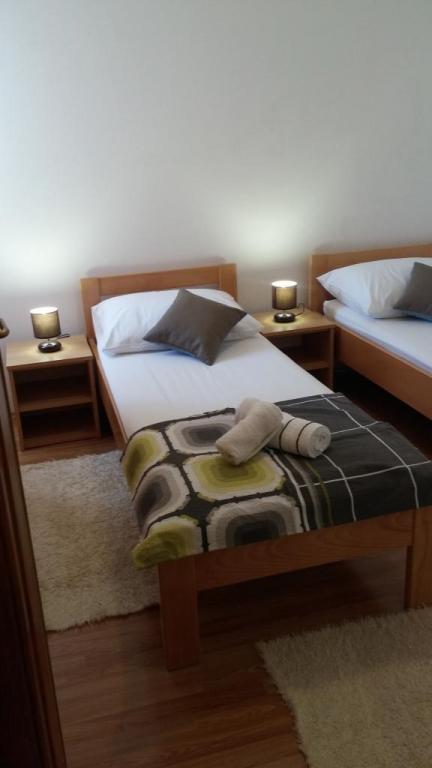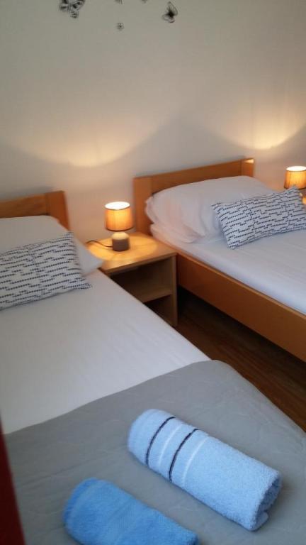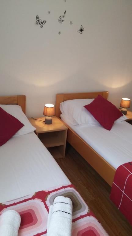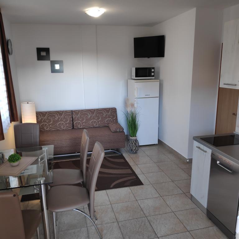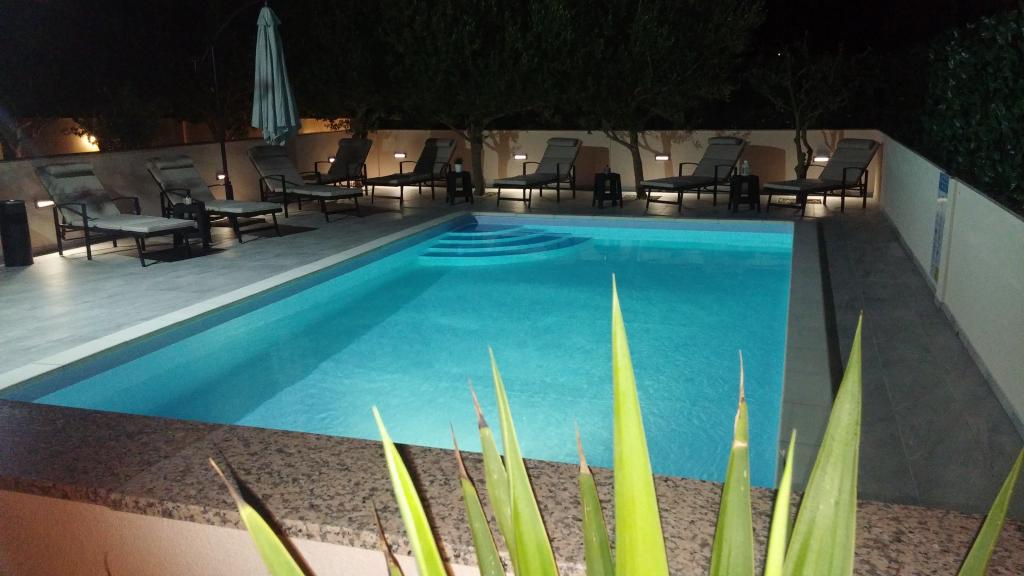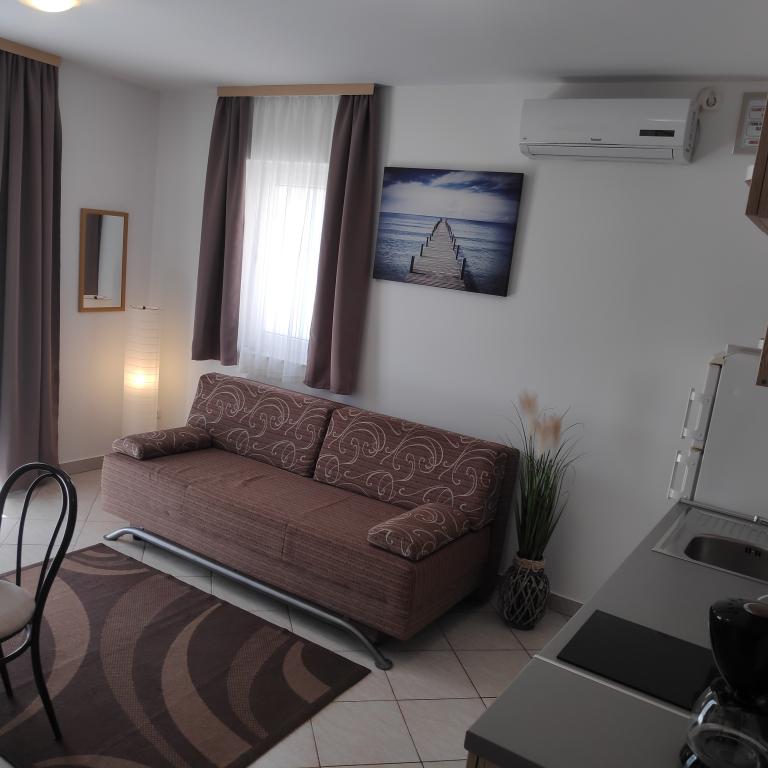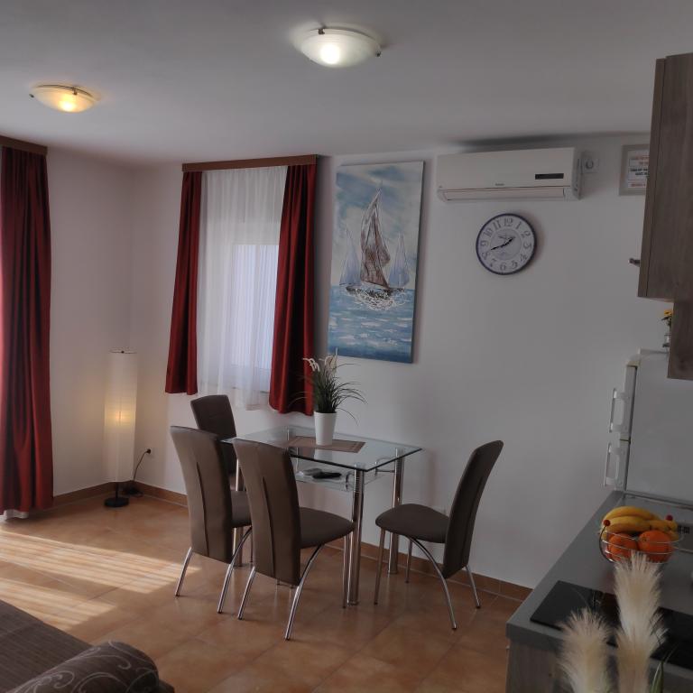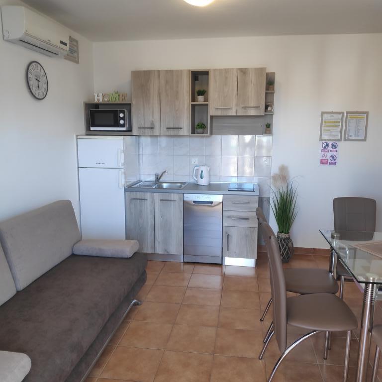 Villa Petra & Sanja (Villa met zwembad) ligt in NOVALJA op het prachtige eiland PAGU, midden in een tuin, omgeven door olijfbomen en palmbomen. Gasten hebben toegang tot een buitenzwembad, gebruik van een barbecue, gratis Wi-Fi, een parkeerplaats, comfortabele en modern ingerichte kamers. Alle appartementen met airconditioning beschikken over een balkon met een zithoek, een volledig uitgeruste keuken en een badkamer. Alle appartementen hebben een magnetron, een vaatwasser en een wasmachine. Er zijn 6 appartementen met één of twee slaapkamers beschikbaar voor reservering. Slechts tien minuten lopen naar het zandstrand en de kustpromenade die naar het centrum van Novalja leidt. Andere prachtige zand-, kiezel- en rotsstranden zijn de mooiste aan de Adriatische Zee en liggen op slechts een paar minuten rijden met de auto. De taxistandplaats bevindt zich op 10 meter van het gebouw. Het beroemde ZRĆE-strand is vlakbij.