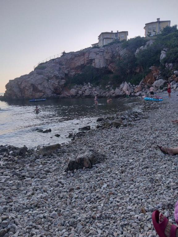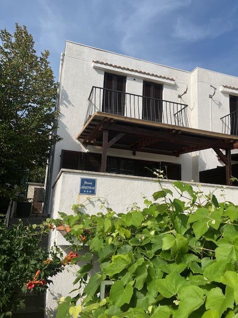 Appartement met twee verdiepingen 70m2 + groot terras 20m2 met uitzicht op zee. Op de benedenverdieping is er een woonkamer met toegang tot het terras, een keuken en een toilet. Op de bovenverdieping is er een badkamer met toilet en douche, drie slaapkamers (twee met uitzicht op zee en een balkon). Aparte ingang, privacy. 3 minuten de trap af naar het strand.