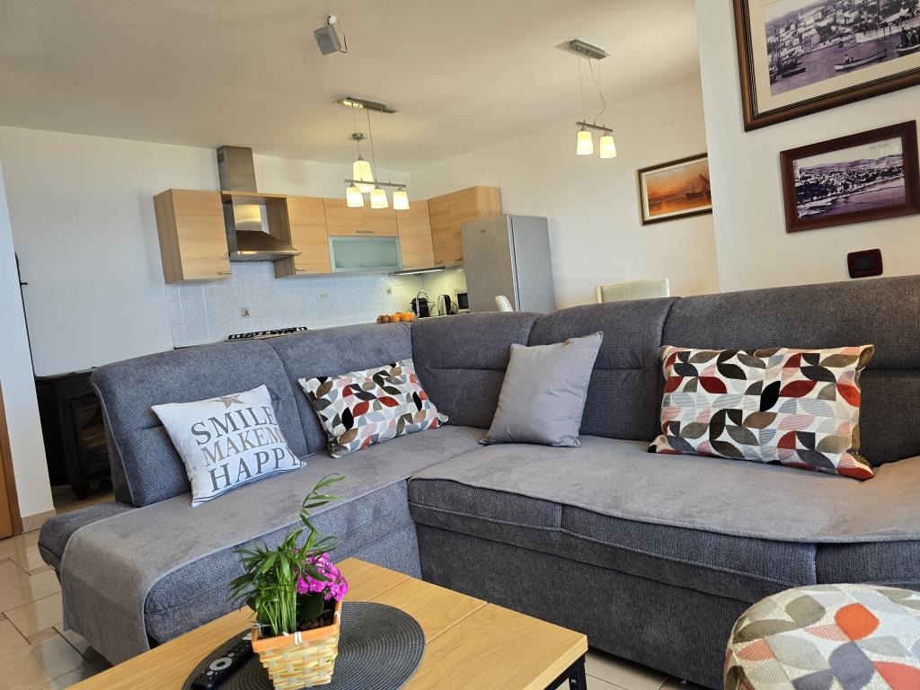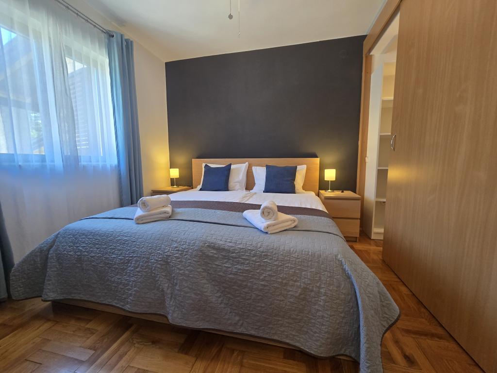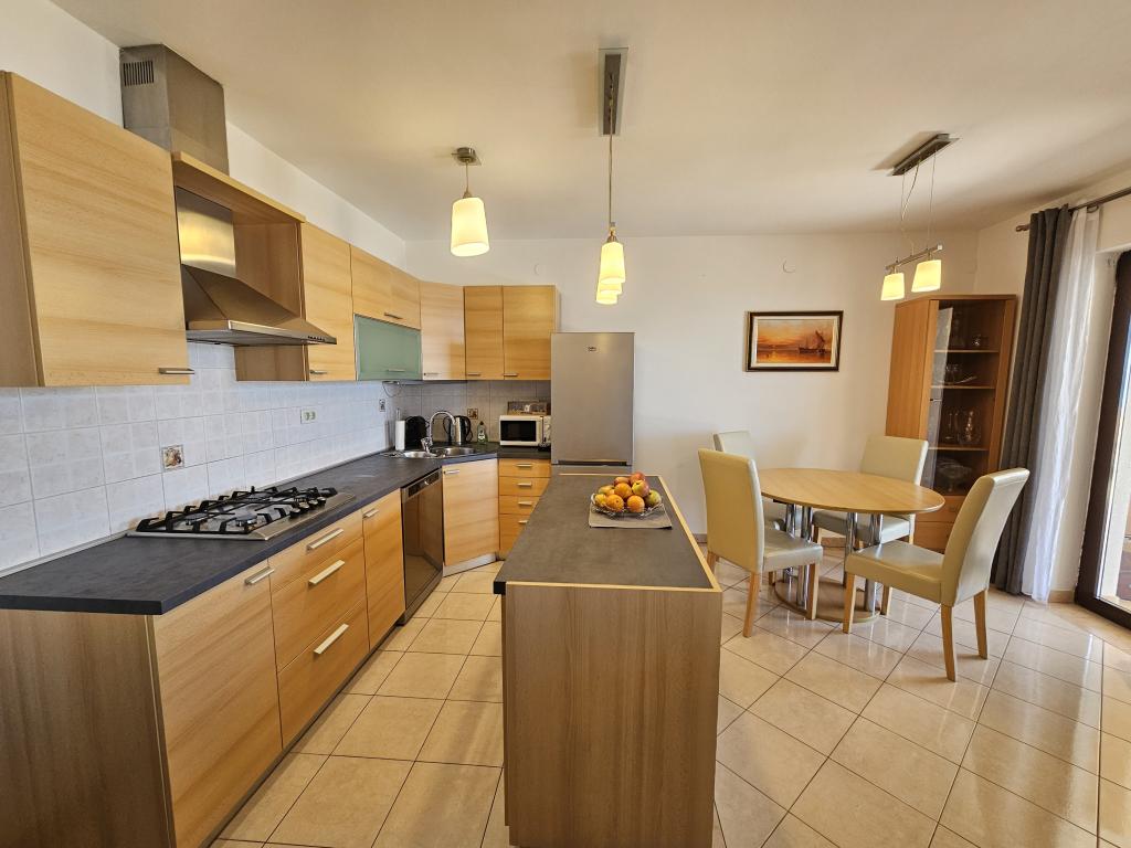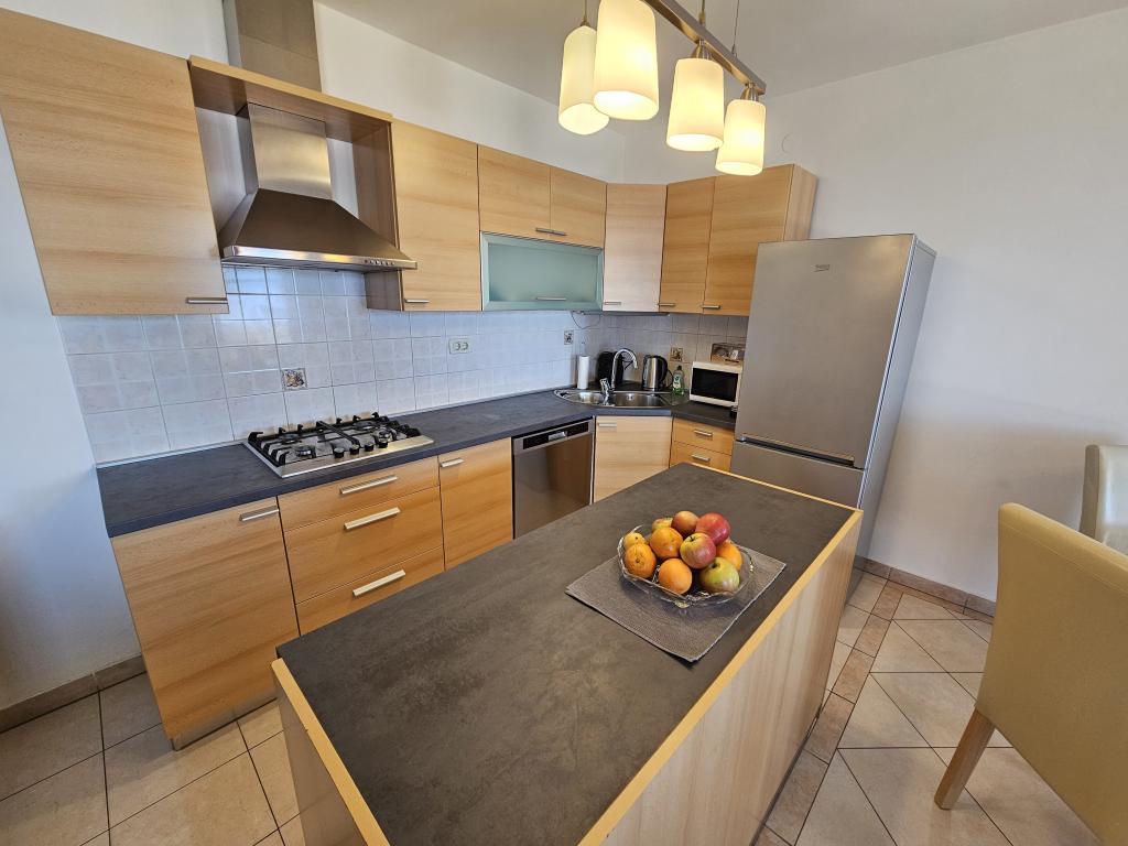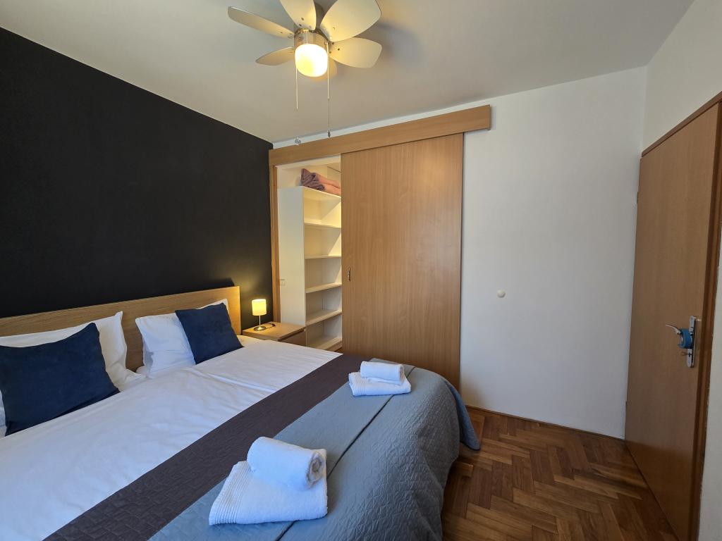Volledig uitgerust appartement bestaande uit twee slaapkamers, badkamer, hal, keuken, eetkamer en woonkamer. Er is een kinderstoel beschikbaar. Terrasgrootte 25m2. In de slaapkamer bevindt zich een extra LCD-tv-ontvanger. Slaapkamer 1: groot tweepersoonsbed (200x180 cm). Slaapkamer 2: stapelbed (200x180cm). Het appartement ligt in een rustige straat, dichtbij alle benodigde voorzieningen. Het bevindt zich op de eerste verdieping van het familiehuis. De keuken is volledig uitgerust (vaatwasser, gasfornuis, oven, koelkast met vriezer, filterkoffiezetapparaat + Nespresso, broodrooster, magnetron, waterkoker, smoothiemaker...). Het appartement is volledig voorzien van airconditioning (woonkamer + keuken en slaapkamers). De woning is vrijstaand en heeft een eigen gratis parkeerplaats in de tuin.