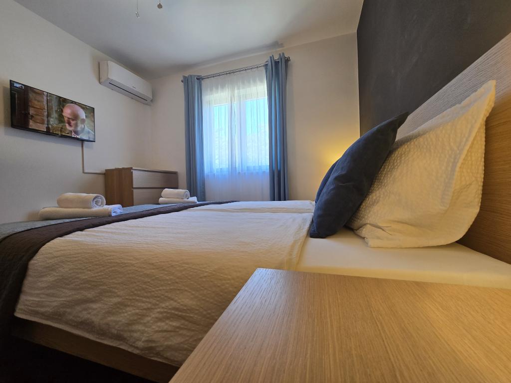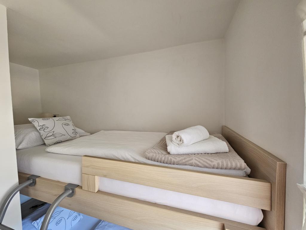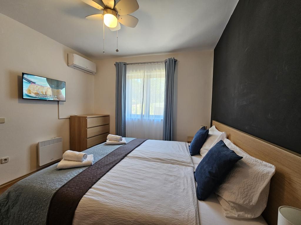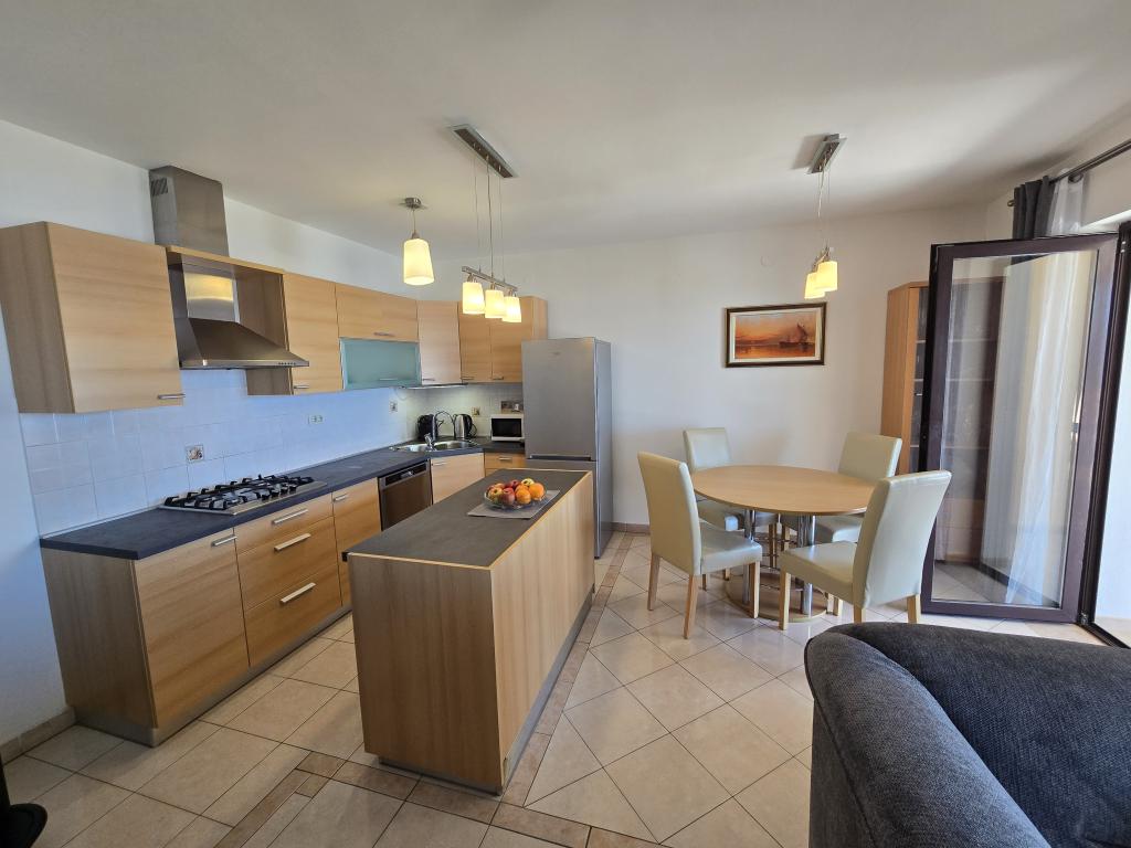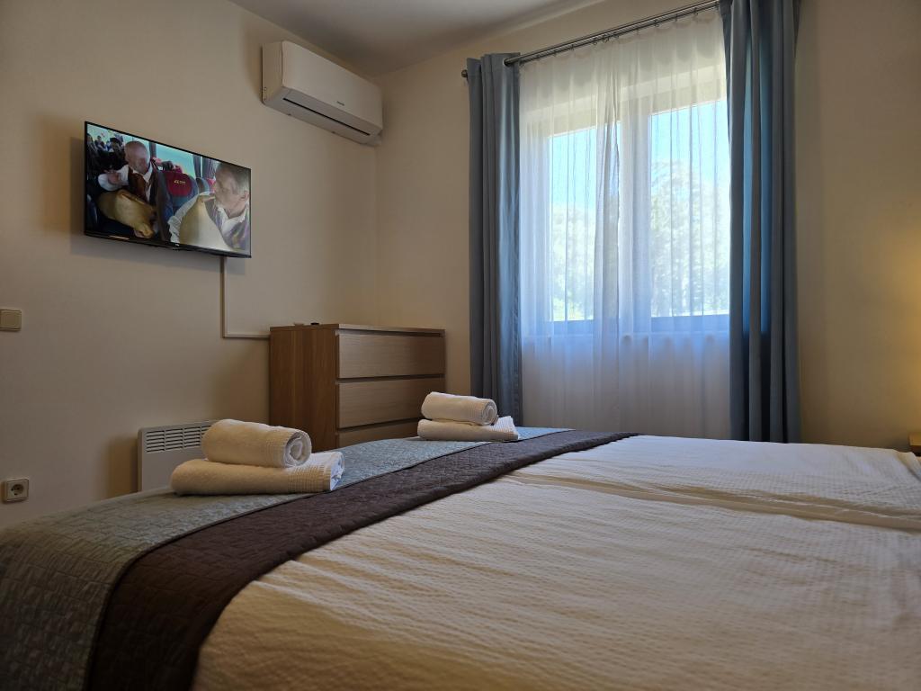 Volledig uitgerust appartement bestaande uit twee slaapkamers, badkamer, hal, keuken, eetkamer en woonkamer. Er is een kinderstoel beschikbaar. Terrasgrootte 25m2. In de slaapkamer bevindt zich een extra LCD-tv-ontvanger. Slaapkamer 1: groot tweepersoonsbed (200x180 cm). Slaapkamer 2: stapelbed (200x180cm). Het appartement ligt in een rustige straat, dichtbij alle benodigde voorzieningen. Het bevindt zich op de eerste verdieping van het familiehuis. De keuken is volledig uitgerust (vaatwasser, gasfornuis, oven, koelkast met vriezer, filterkoffiezetapparaat + Nespresso, broodrooster, magnetron, waterkoker, smoothiemaker...). Het appartement is volledig voorzien van airconditioning (woonkamer + keuken en slaapkamers). De woning is vrijstaand en heeft een eigen gratis parkeerplaats in de tuin.