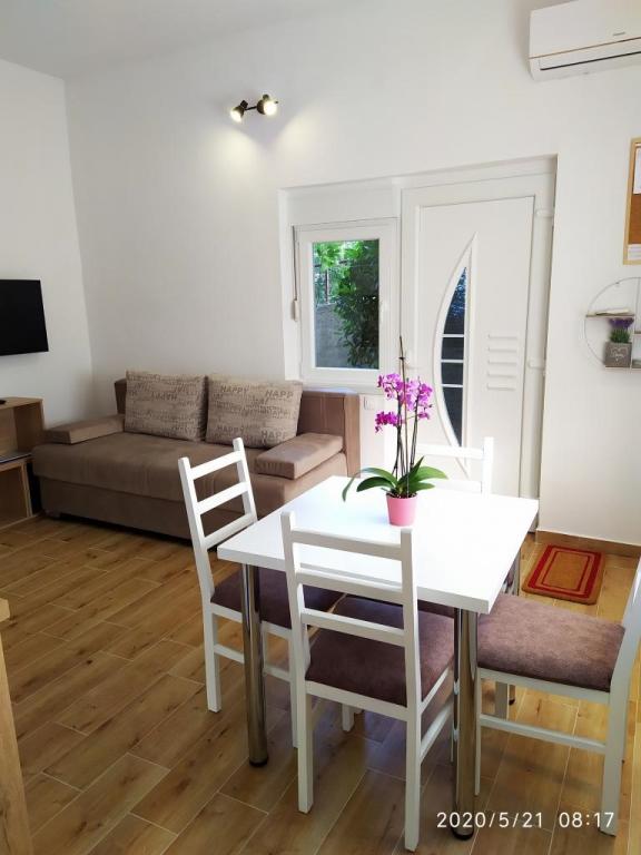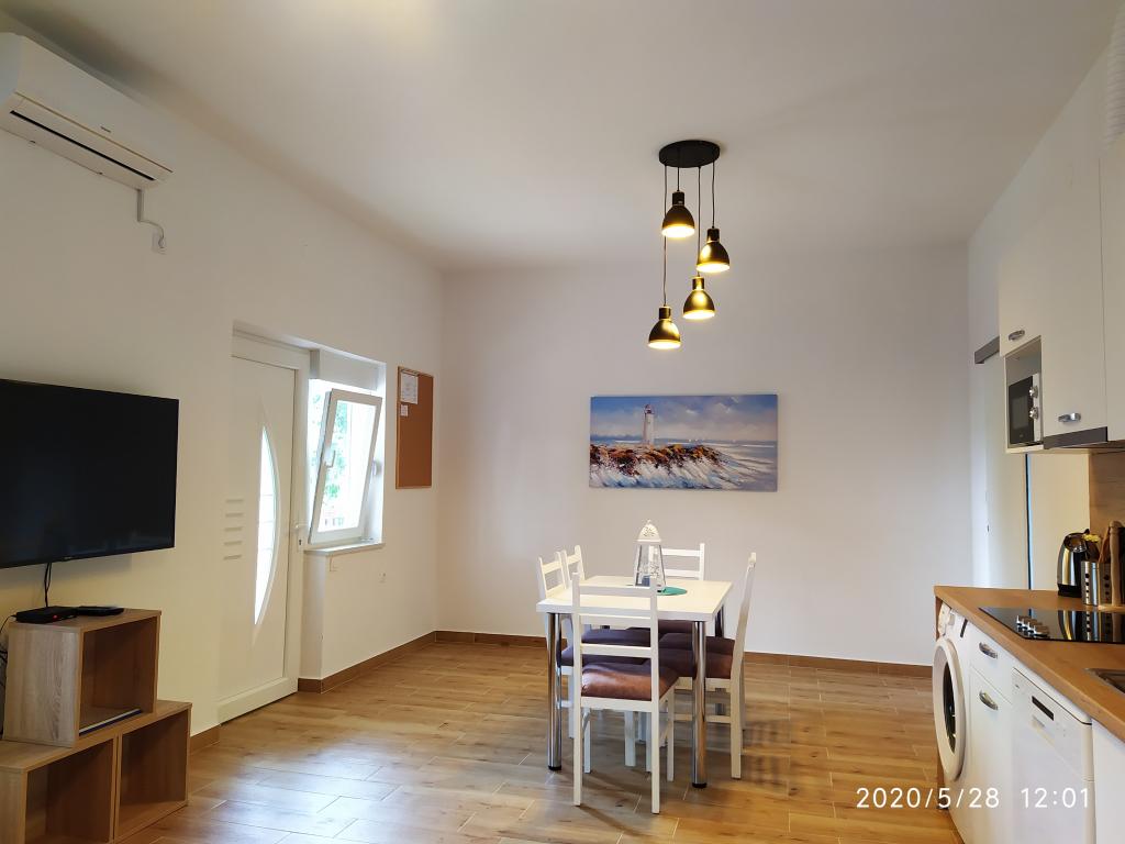 De faciliteit is gelegen in een rustig deel van de stad, op slechts een paar minuten lopen van het centrum en tien minuten lopen van het strand. Het gebouw heeft twee tweepersoonskamers en twee appartementen. De kamers bevinden zich op de eerste verdieping. Elke kamer heeft een eigen badkamer in de kamer en een balkon. De kamers zijn uitgerust met een tweepersoonsbed en airconditioning. Gasten die besluiten een kamer te reserveren, hebben de mogelijkheid om gebruik te maken van de zomerkeuken, die is uitgerust met een gasfornuis, koelkasten, een waterkoker en de nodige zwart-wit servies. Wi-fi, airconditioning, parkeren en gebruik van de zomerkeuken zijn bij de prijs inbegrepen. Voor het gebruik van de wasmachine wordt HRK 40,00 per wasbeurt in rekening gebracht. De appartementen zijn gebouwd en ingericht in 2020. Elk appartement heeft een parkeerplaats, een terras, airconditioning, televisie met Evo TV, wifi, föhn, strijkijzer, strijkplank, keuken uitgerust met elektrisch fornuis, afzuigkap, magnetron, waterkoker, koelkast, vaatwasser, wasmachine en zwart en witte gerechten.