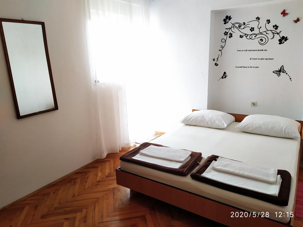 Mijn vriend en ik besloten een weekend naar de kust te gaan. Novi Vinodolski was een van de dichtstbijzijnde locaties, aangezien we alleen op zaterdag en zondag verbleven, waren we gewoon op zoek naar een accommodatie om de nacht door te brengen. Deze kamer bevindt zich in een groot huis, op 7 minuten lopen van het centrum en 15 minuten naar het strand (20 minuten naar het strand van San Marino met een eiland aan de overkant van de straat). De kamer heeft uitstekende airconditioning, hoewel het zelfs zonder airconditioning zeer comfortabel is, een klein balkon met een prachtig uitzicht op de zee en de stad, een badkamer die niet eens klein is, netheid en vriendelijkheid zijn op hetzelfde niveau. Voor de kamer staat een koelkast die gedeeld wordt met de buren, op de begane grond is een zomerkeuken met alles wat je nodig hebt (vooral een waterkoker), er is schaduw op de parkeerplaats. Al met al perfect voor een nacht of twee. Matilda is een uitstekende gastvrouw, klaar met aanwijzingen naar elke plaats en strand en beschikbaar wanneer dat nodig is. Het enige is dat de stad saai is, de stranden zijn met enorme stenen zodat je nauwelijks de zee in kunt, maar er is een uitstekend groot park met diepe schaduw. Aan de andere kant is Crikvenica dichtbij, dus 's avonds is het voor jongeren een betere optie.