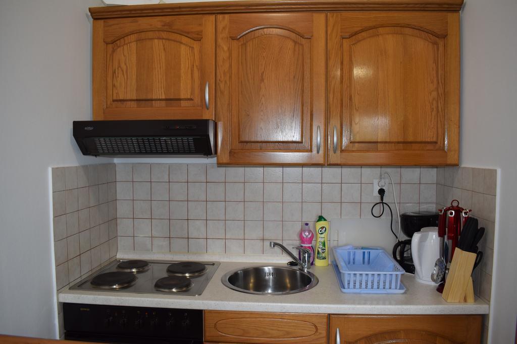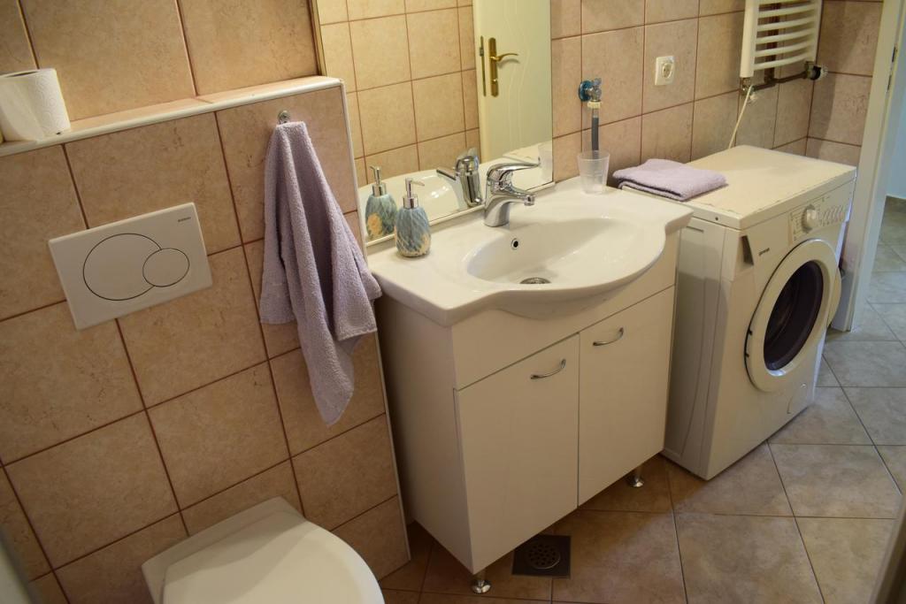 We waren met 4 volwassenen met 2 kleine kinderen in de A3+2 en waren zeer tevreden. De eigenaar Zana is erg vriendelijk, aardig, behulpzaam en behulpzaam. Ze praat graag met haar gasten en zorgt ervoor dat ze zich zeer welkom voelen. In het appartement is er alles wat u nodig heeft voor uw dagelijkse behoeften. Een magnetron, koffiezetapparaat, waterkoker, fornuis, oven, strijkplank met strijkijzer en een föhn. Een ander voordeel is dat er een vaatwasser en een wasmachine aanwezig zijn. Het appartement heeft ook een groot terras, waar u 's ochtends of' s avonds kunt ontbijten met een gasgrill, die ook beschikbaar is om te grillen. Er is ook een hangmat om te chillen op het terras. Direct bij het huis is een grote parkeerplaats voor meerdere auteurs. De locatie van het appartement is ook geweldig. Omdat alles op loopafstand is, graag het strand en het stadscentrum met alle restaurants en winkels. Ook winkels als Lidl, Konzum en dm zijn op loopafstand. Aan de overkant van de straat zit een kleine bakker voor het dagelijkse brood. Ook is er een tankstation in de directe omgeving. Alles in een geweldig appartement, geweldige locatie, vriendelijke eigenaren en een ontspannen vakantie.