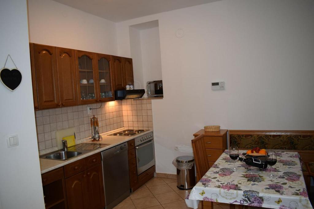 Voordat we besloten om te boeken, we waren skleptični omdat het beeld is altijd misleidend. Wel een paar keer waren we de beslissing om dit appartement te kiezen. Maar we zijn in staat om snel te beslissen want de tijd nadert afscheid. Bij aankomst werden we begroet door mevrouw Ana, zeer vriendelijk, gezellig en gastvrij. Hoewel we verbleven in een studio-appartement (vier personen) hadden we alles wat we poterbovali gevonden. Het appartement is zeer ordelijk en schoon, evenals de omgeving. Gelegen in de perfecte locatie. Binnen vijf minuten lopen heb je alles: strand, het stadscentrum, winkels, apotheek ... Tegenover het appartement aan de overkant is een bakker en een pizzeria. Bovendien, het is een ander groot ding: gratis parkeren op het terrein van het appartement. We hadden een geweldige vakantie. We hebben genoten van een piek. Dank u, mevrouw Ani en haar pups GOLDY naar ons met het dagelijkse bezoek aan de dag op te helderen :))))) Wij raden aan iedereen, vooral gezinnen met kinderen.