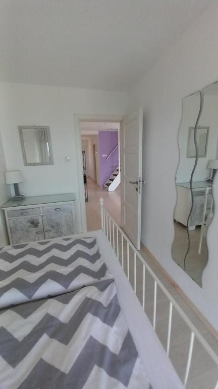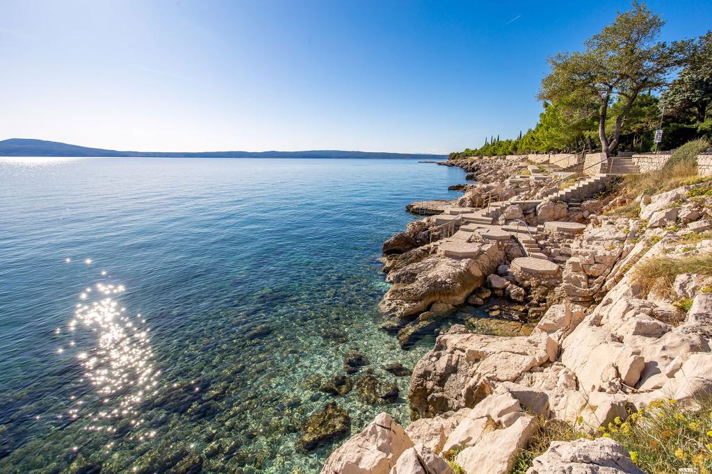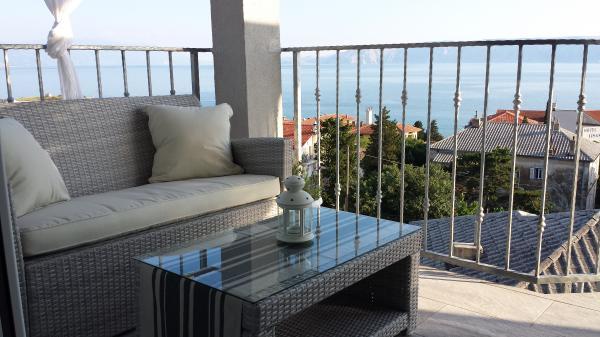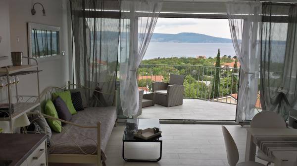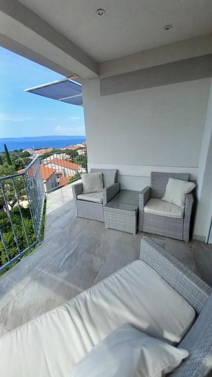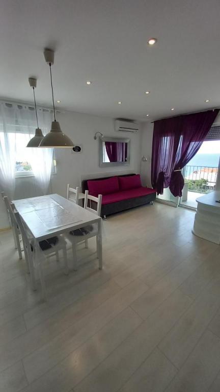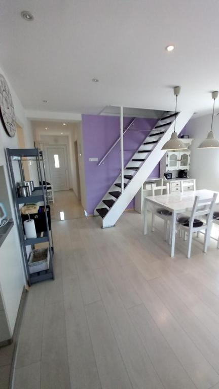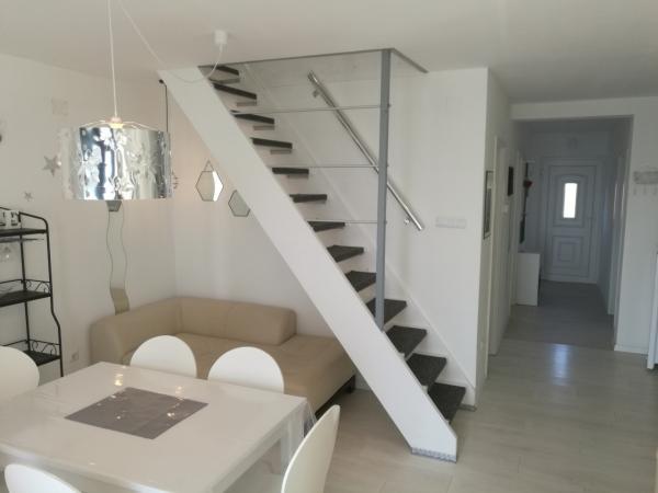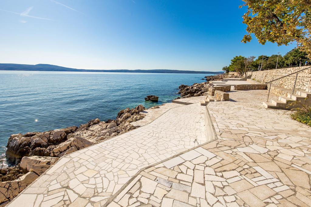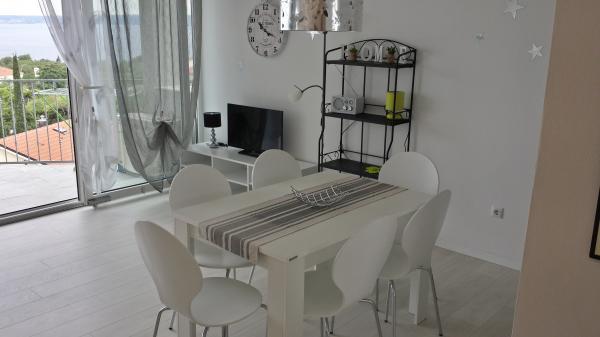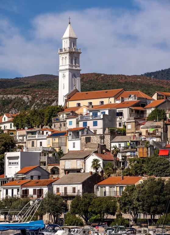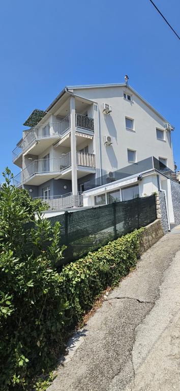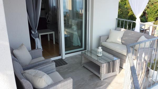Appartement "LAVANDA" en Appartement "RUŽMARIN" zijn twee familieappartementen, bedoeld voor grotere gezinnen, voor vakanties met kinderen en kleinkinderen. Groepen jongeren worden NIET geaccepteerd, feesten zijn niet toegestaan! De appartementen bevinden zich in een huis op de tweede verdieping; de ene naast de andere. Elk appartement heeft twee verdiepingen. Ze zijn volledig, modern en comfortabel ingericht en de terrassen van de appartementen bieden een open uitzicht op de zee, de skyline van de stad en het eiland Krk. Ze zijn gelegen op een rustige locatie (doodlopende straat) op ongeveer 400 m (een paar minuten lopen) van het belangrijkste stadsstrand, geschikt voor kinderen en volwassenen, de promenade langs de zee en het park (het gedeelte van hotel Lišanj) en het stadscentrum van Novi Vinodolski, met alle voorzieningen. Er zijn twee jachthavens in de stad. De stad en haar omgeving zijn rijk aan culturele, gastronomische en diverse entertainmentevenementen; aangepaste programma's voor toeristen; in de zomer. Er zijn talloze restaurants en souvenirwinkels in de stad en langs het strand. Elk appartement beschikt over 1 eigen parkeerplaats, die zich voor het huis bevindt (aangegeven). De appartementen beschikken niet over een barbecue, het is niet mogelijk om op de terrassen te grillen!