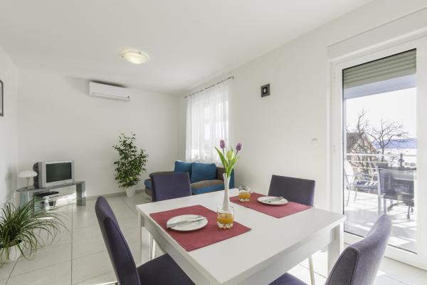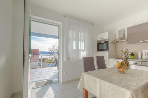 Mooi, licht en zeer schoon appartement met een extra groot balkon en prachtig uitzicht op de Adriatische Zee en het eiland Krk. De woning en de buitenruimtes bevinden zich in een zeer goed onderhouden staat. Het zou wenselijk zijn om op zijn minst een insectenbescherming op het slaapkamerraam te hebben. We waren daar 10 dagen en voelden ons zeer comfortabel. De verhuurder is erg vriendelijk en doet zijn best zonder opdringerig te zijn. We hopen dat het ons lukt om dit appartement opnieuw te boeken.
