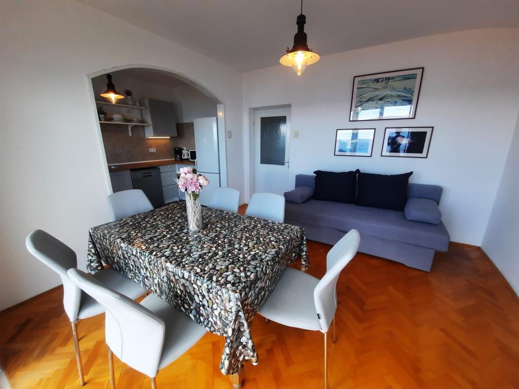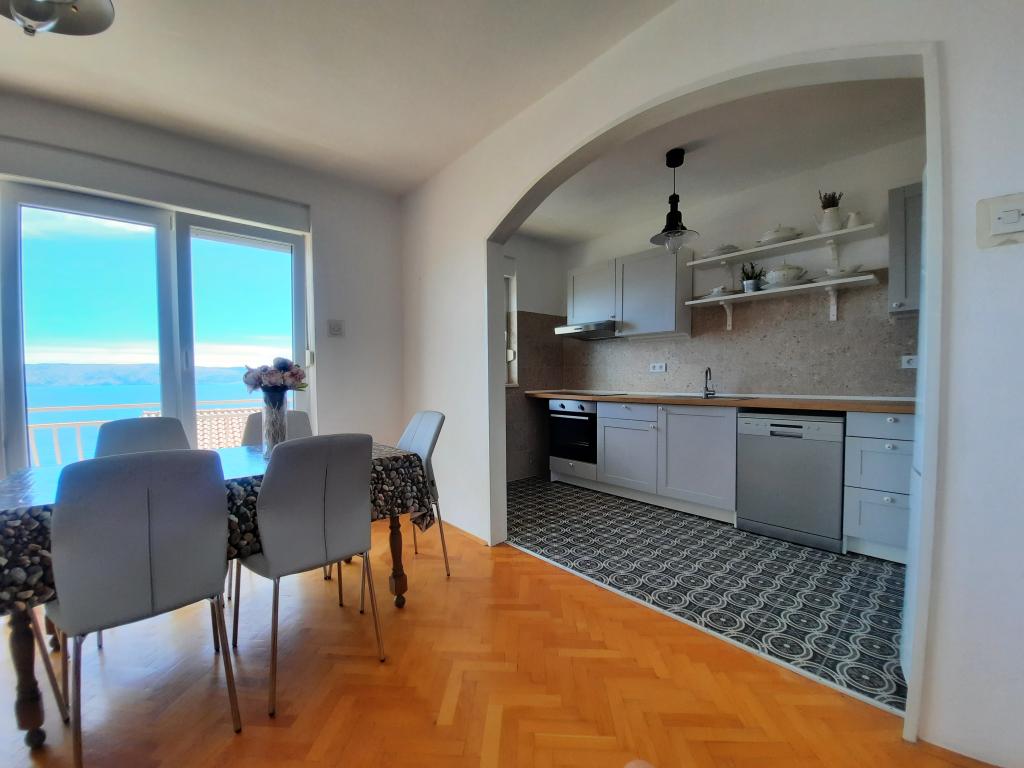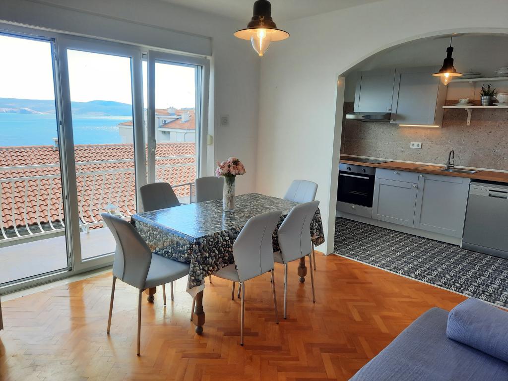 Het appartement is gelegen in het oostelijke deel van de Nieuwe Vinodolski, rustige en groene, ongeveer 800 m van het centrum en 200 m van de zee. Gelegen op de tweede verdieping van het huis, volledig ingericht, met een groot balkon met uitzicht op de hellingen van Velebit, Senj en deuren, en bijna de gehele oostkust van het eiland. Het interieur bestaat uit een keuken, een woonkamer met slaapbank, een grote badkamer en drie comfortabele slaapkamers met zes bedden (totaal 100 m2 balkon 15 m2). Beschikbaar voor toeristen is een complete tuin met een grote parkeerplaats en twee terrassen. Garage, grill, internet op aanvraag. Huisdieren bespreekbaar. De mogelijkheid van het vinden van extra eenheden in de omgeving. Grote kortingen in de pre-season.