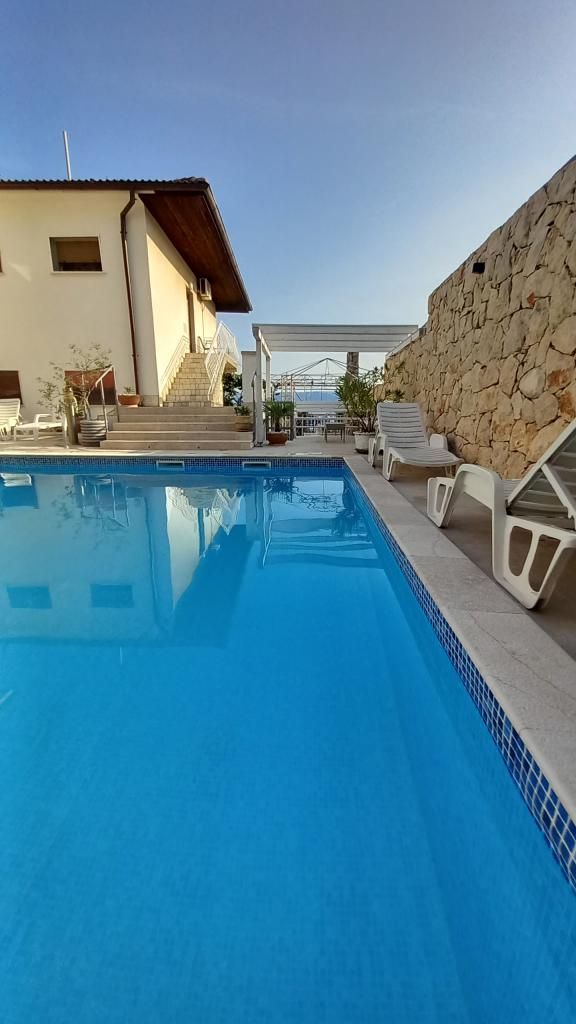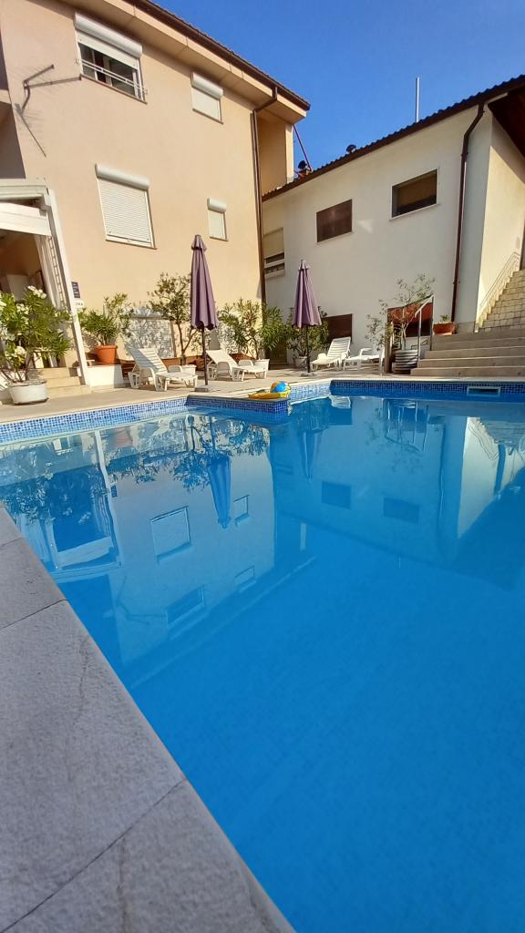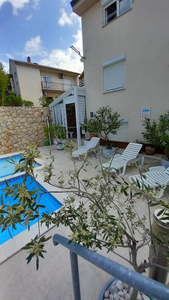 Familieappartementen - ŠVOB - met zwembad; voor een gezinsvakantie met kinderen en kleinkinderen (gezinsvriendelijk). Groepen jongeren zijn niet toegestaan. Zwemmen in de zee en het zwembad, ontspannen met een massage, sauna. De appartementen zijn gelegen op een geweldige locatie in Novi Vinodolski, op ongeveer 350 meter van het strand (geschikt voor kinderen en volwassenen), het hotel Lišanj, het park, de boulevard aan zee en het stadscentrum. De appartementen zijn van alle gemakken voorzien. Elk appartement heeft een eigen ingang, balkon of terras met zeezicht, tuin en een gedeeld buitenzwembad. *Wij zijn geopend van 28.04. - 15.10. (seizoensgebonden). - In het huis - met zwembad: 5 familieappartementen (2 grotere en 3 kleinere), terrassen/grill, 2 buitendouches, toilet. Parkeren voor de deur (1 parkeerplaats per appartement), wifi. *Feesten voor jongeren zijn niet toegestaan! *Eerste min./Laatste min. PRIJS geldt voor 2 volwassenen + 2 kinderen