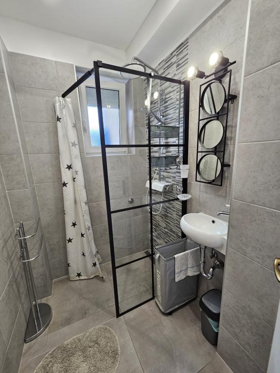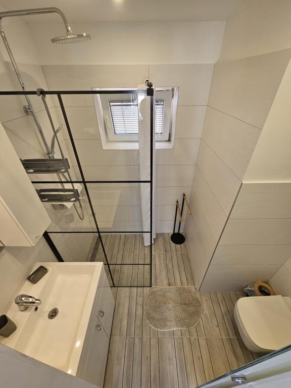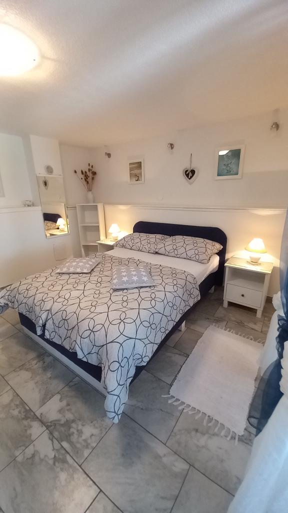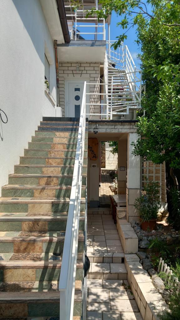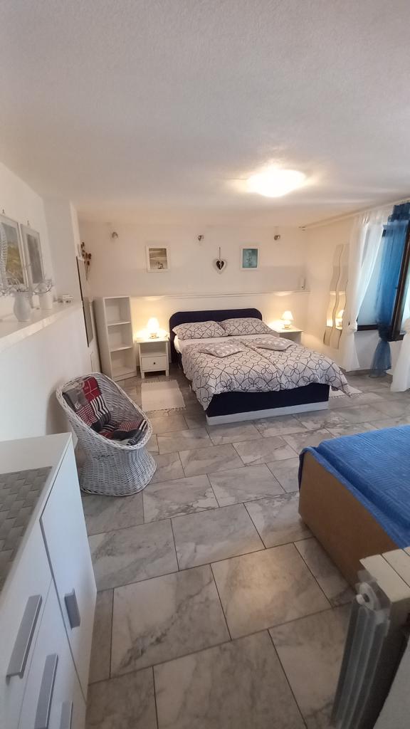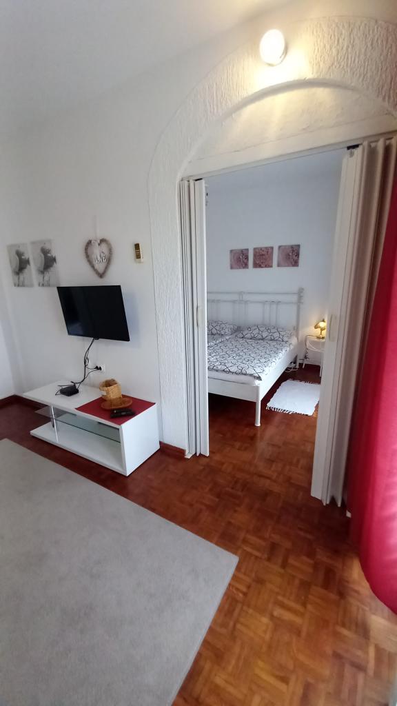 Ik mis dat uitzicht nu. !!! Het appartement is ruim voorradig, alles is aanwezig behalve een strijkijzer en föhn, deze dient u zelf mee te nemen. Alles is met smaak ingericht, modern en schoon. Een steraftrek, omdat er geen airconditioning in de kamer onder het dak is, kon de ventilator de hitte niet weerstaan. Mevrouw Svob was erg aardig en behulpzaam. Het was niet ver van het strand. En naar het stadscentrum, waar u 's avonds tal van restaurants en cafés kunt vinden, is het ook slechts 5 minuten rijden. Konsum Market en bakker ook in het stadscentrum. Lidl is ook verkrijgbaar in de stad. Parkeerplaatsen waren er ook. Al met al kan ik alleen maar aanraden! Groeten aan de familie Svob!