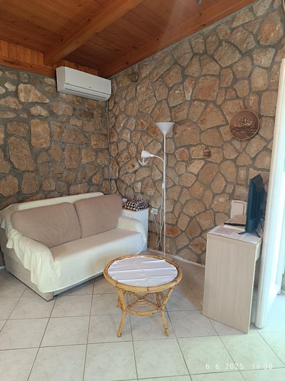 Op de tweede verdieping van het huis bevinden zich twee grotere appartementen met twee slaapkamers (60 m²) met een prachtig uitzicht op zee. Een kleiner appartement met één slaapkamer (45 m²) is gelegen in een apart stenen (rustiek) huisje naast het hoofdgebouw, waarmee het een tuin en binnenplaats deelt. Er is gratis parkeergelegenheid. Een barbecue met terras in de tuin is beschikbaar voor alle gasten. De zee ligt op ongeveer 250 meter bergafwaarts, waar een boulevard met restaurants en verschillende soorten stranden te vinden is. Het centrum is op ongeveer 1,5 km afstand, langs de boulevard aan zee.