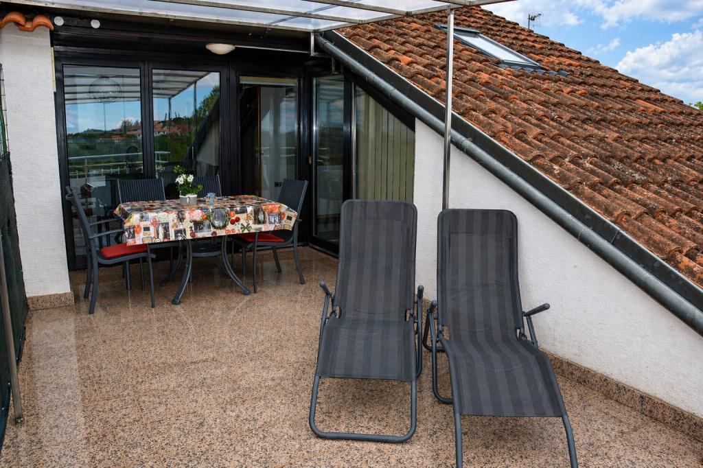 Op een rustige, verkeersvrije locatie bevinden zich twee knusse appartementen, elk geschikt voor maximaal 4 personen. Ze zijn omgeven door stilte en een ontspannen sfeer, waar kinderen onbezorgd kunnen spelen en u kunt genieten van een echte vakantie, ver weg van de dagelijkse drukte. Een bijzondere charme wordt gevormd door het overdekte terras met een prachtig uitzicht op zee, vanwaar u elke avond kunt genieten van magische zonsondergangen. De appartementen bevinden zich op de 1e en 2e verdieping en bestaan uit een keuken met een woonkamer, een aparte slaapkamer, een badkamer en een terras met uitzicht op zee. Ze zijn volledig uitgerust voor een comfortabel verblijf - de keuken beschikt over voldoende servies en keukengerei om maaltijden te bereiden. Gasten hebben toegang tot airconditioning, gratis wifi, tv, bedlinnen, handdoeken en een föhn. Er is ook een parkeerplaats beschikbaar voor gasten.